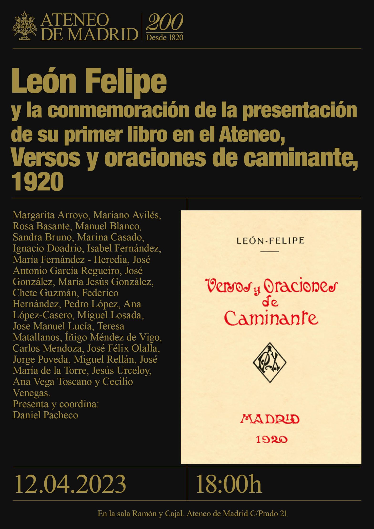 en Léon Felipe y la conmemoración de la presentación de su primer libro en el Ateneo, Versos y oraciones de caminante