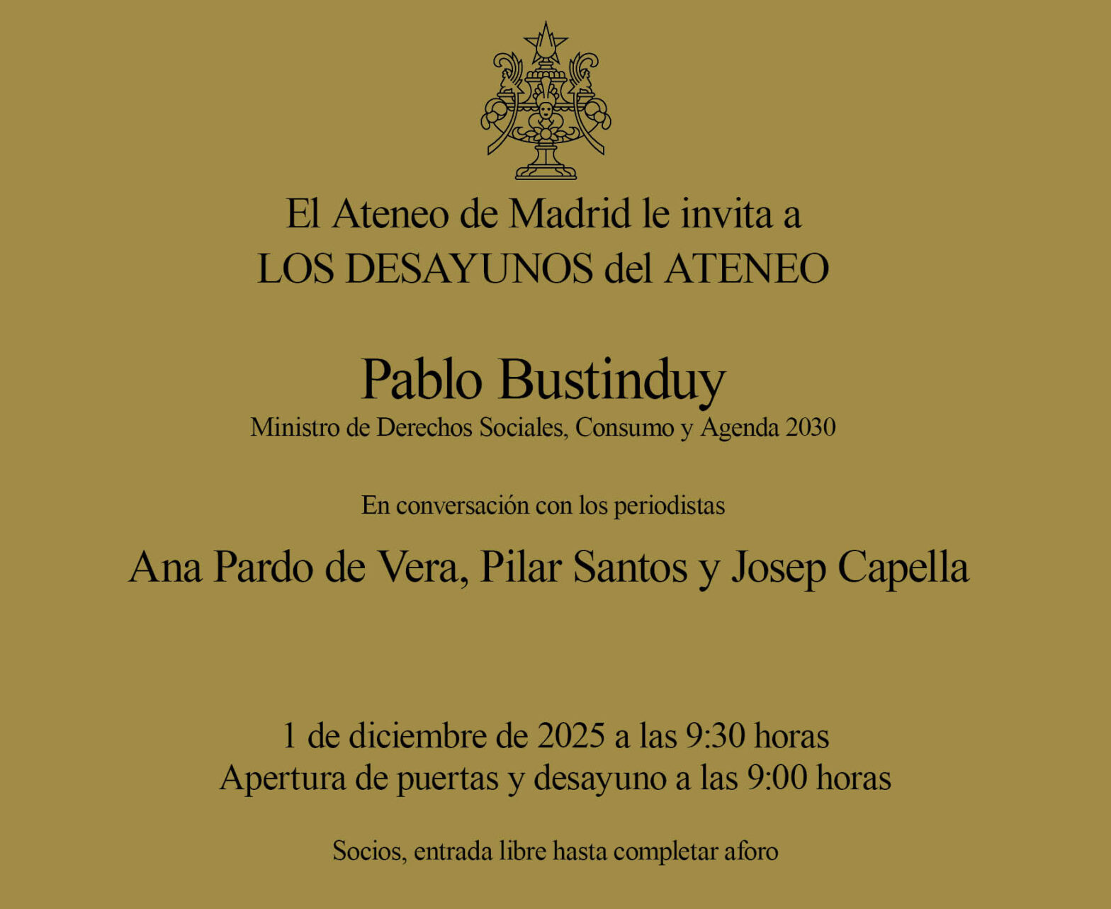 Pablo Bustinduy, ministro de Derechos Sociales, Consumo y Agenda 2030. En conversación con los periodistas: Ana Pardo de Vera, Pilar Santos y Josep Capella.