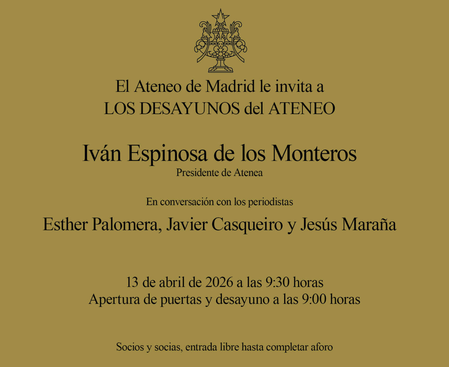 Iván Espinosa de los Monteros, presidente de Atenea en conversación con los periodistas Esther Palomera, Javier Casqueiro y Jesús Maraña. Cátedra Mayor. 9:00h.