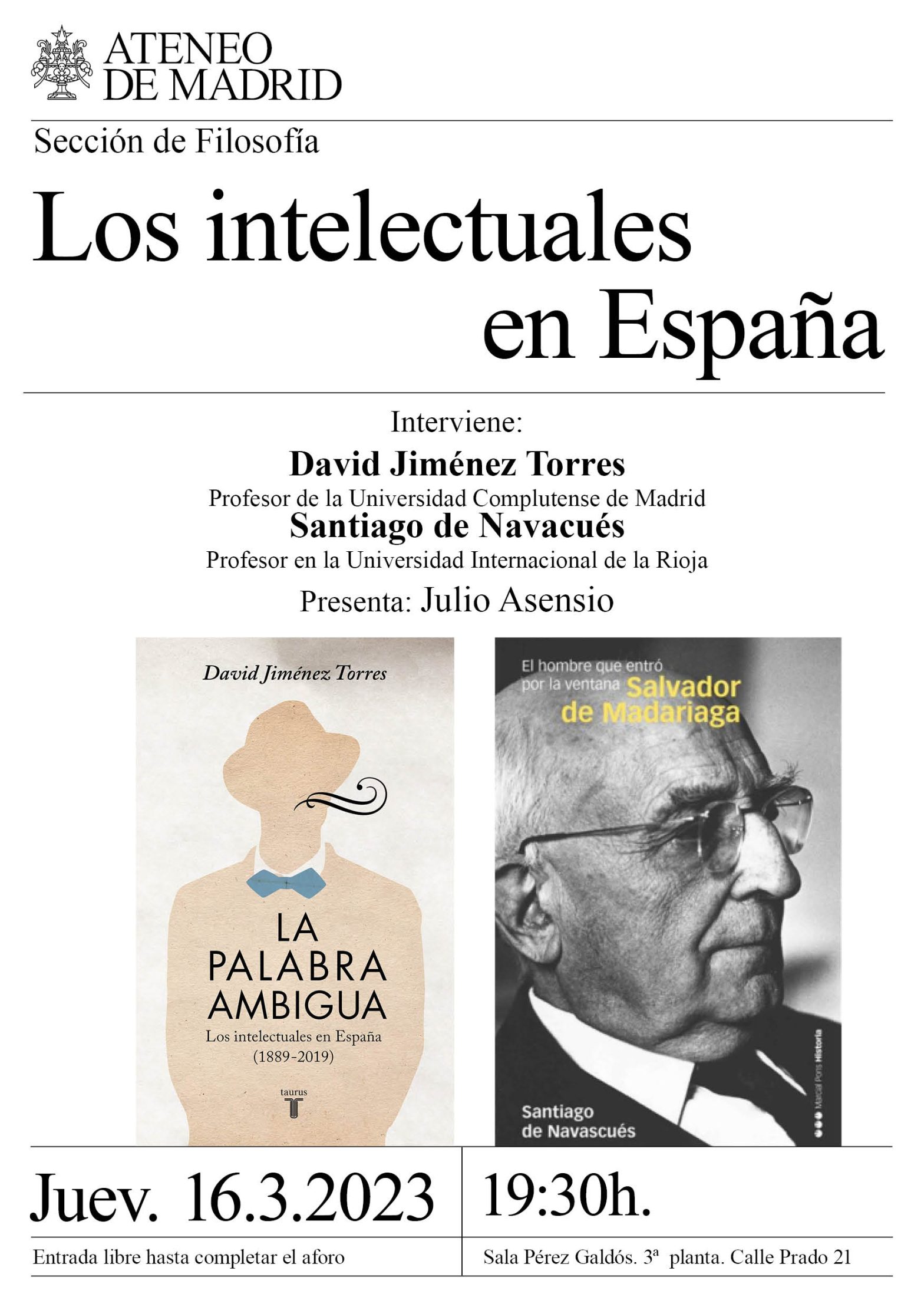 Sección de Filosofía. Interviene: David Jiménez Torres, profesor en la Universidad Complutense de Madrid. Santiago Navascués, profesor de la Universidad Internacional de La Rioja. Presenta: Julio Asensio. Sala Pérez Galdós. 19:30h.
