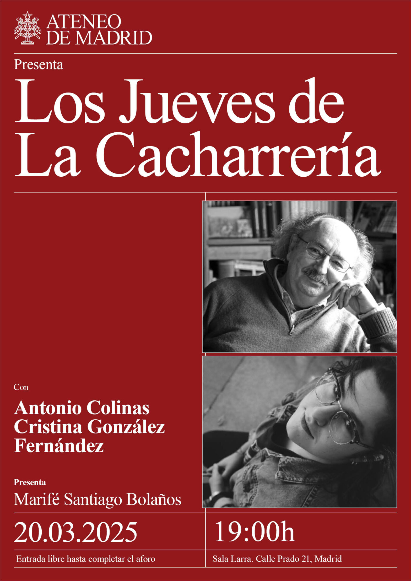Con Antonio Colinas, Cristina González Fernández. Presenta Marifé Santiago Bolaños. Sala Larra. 19:00h.