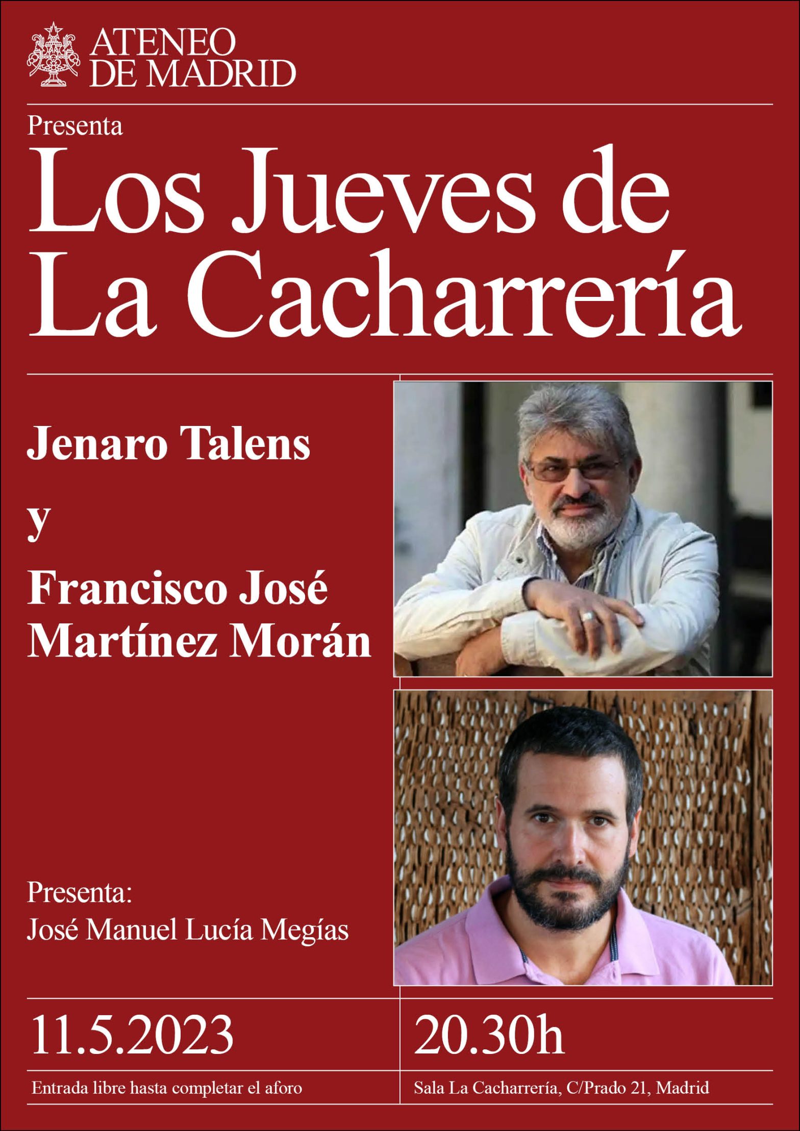 Jenaro Talens y Francisco José Martínez Morán. Presenta: José Manuel Lucía Megías: Sala La Cacharrería. 20:30h.