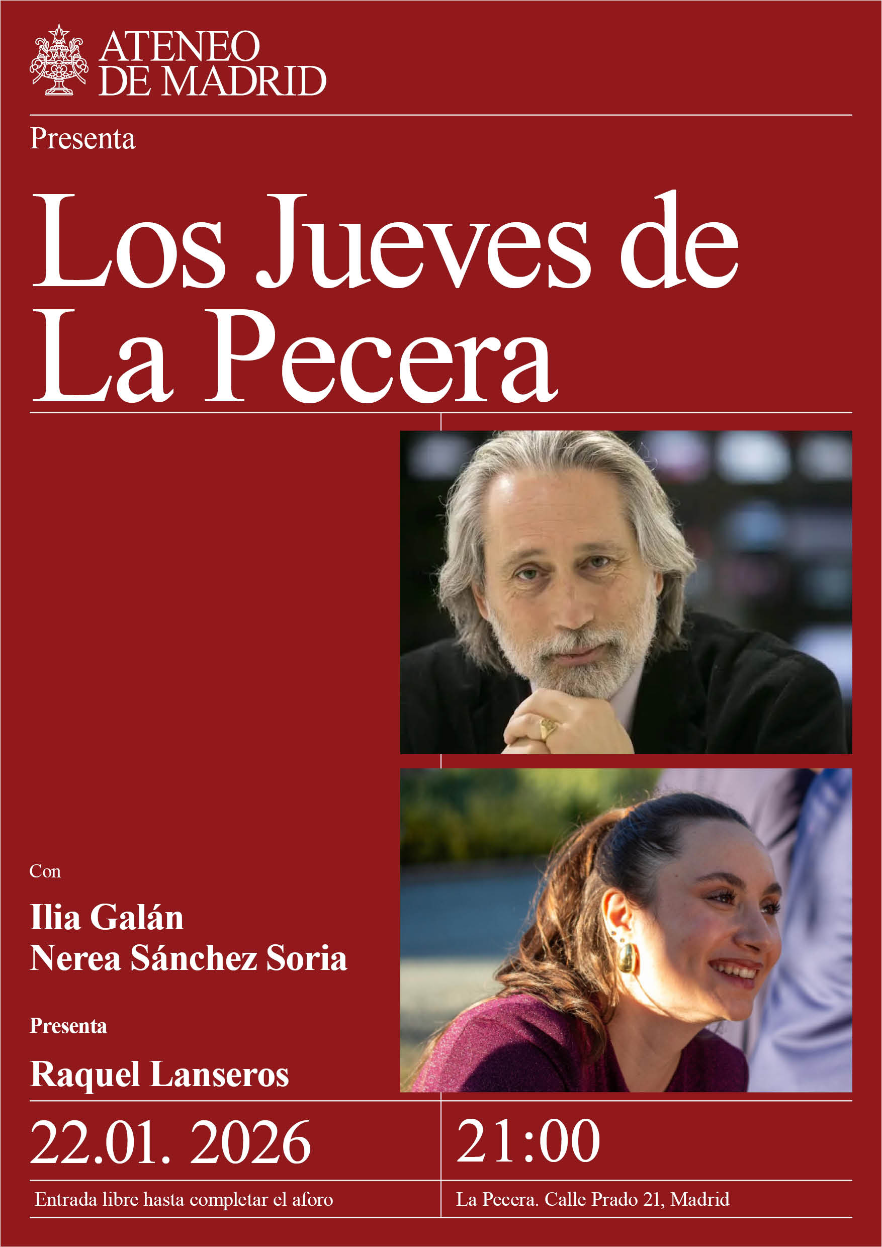 Con: Ilia Galán y Nerea Sánchez Soria. Presenta: Raquel Lanseros. La Pecera. 21:00h.