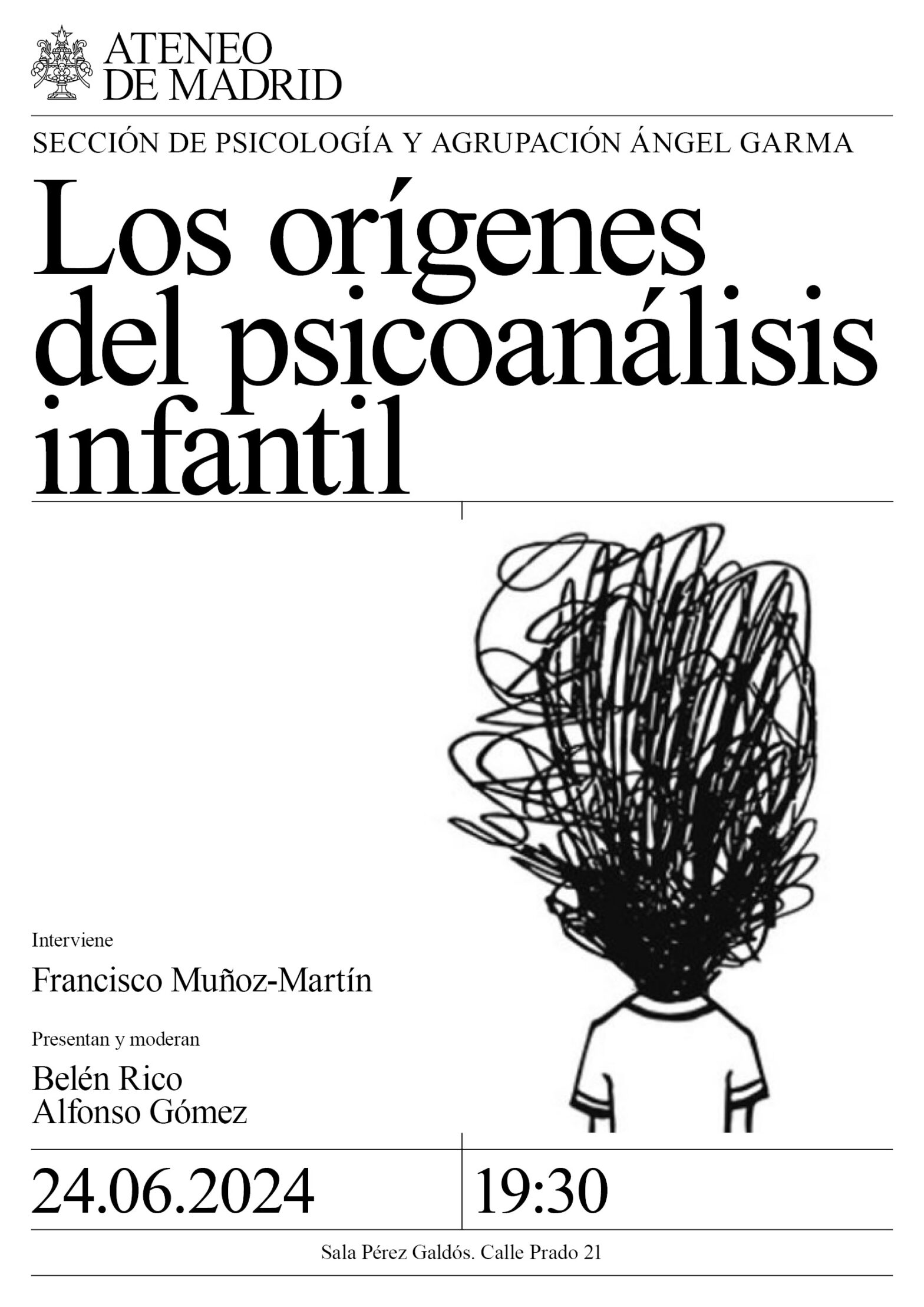 Sección de Psicología y Agrupación Especial Ateneísta Ángel Garma. Interviene: Francisco Muñoz-Martín, psicólogo clínico, doctor en Psicología, miembro ordinario y docente de la Sociedad de Psiquiatría del Niño y del Adolescente (SEPYPNA). Presentan y moderan: Belén Rico y Alfonso Gómez. Sala Pérez Galdós. 19:30h.