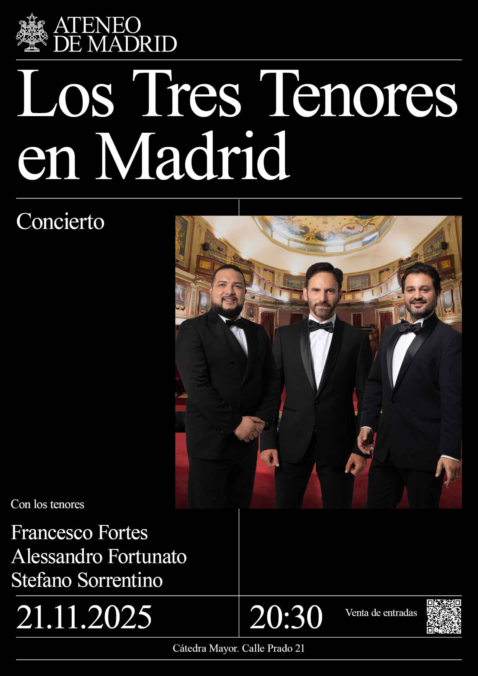 Las voces cautivadoras de los tres tenores Francesco Fortes, Alessandro Fortunato y Stefano Sorrentino, acompañadas de cuerdas y piano, ofrecen al público un viaje espectacular a través de las obras maestras de la ópera italiana, las eternas canciones napolitanas y las apasionadas melodías de la tradición española. Cátedra Mayor. 20:30h.