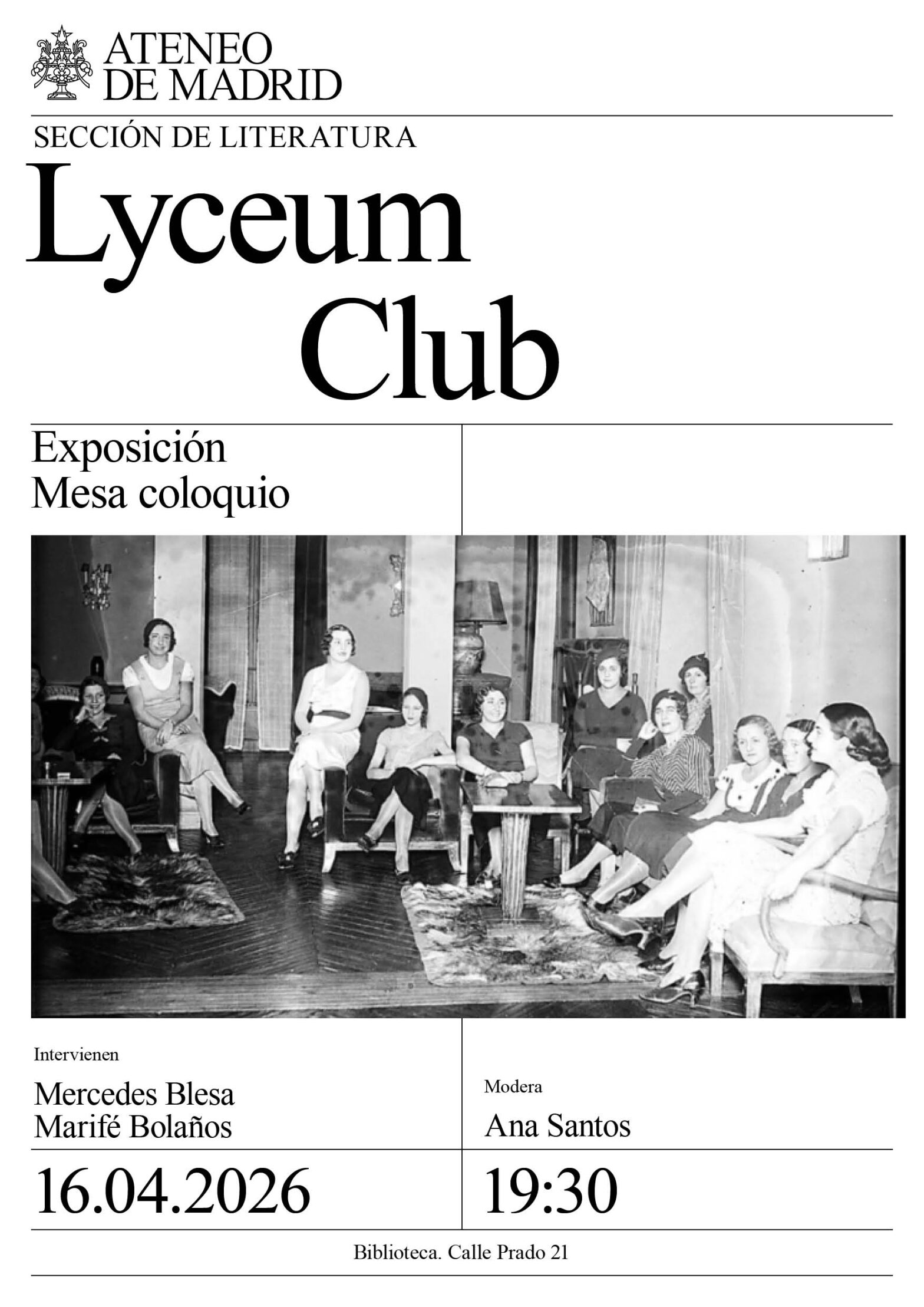 Sección de Literatura. Mercedes Blesa y Marifé Bolaños. Modera: Ana Santos. Biblioteca. 19:30h.