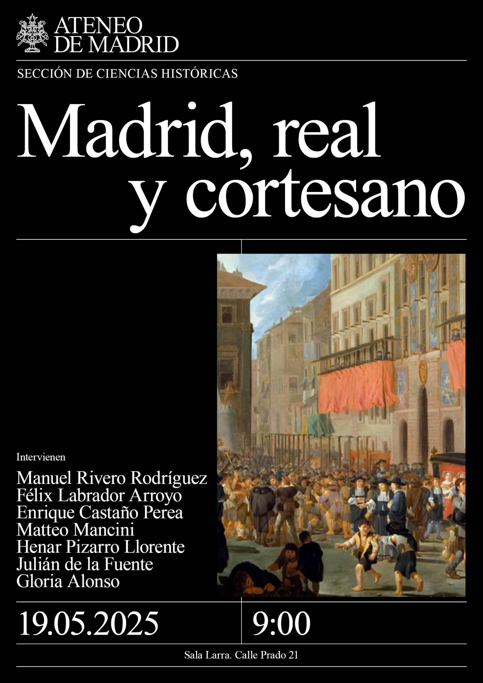 Sección de Ciencias Históricas. Intervienen: Manuel Rivero Rodríguez, Universidad Autónoma de Madrid; Félix Labrador Arroyo, Universidad Rey Juan Carlos; Enrique Castaño Perea, Universidad de Alcalá de Henares; Matteo Mancini, Universidad Complutense de Madrid; Henar Pizarro Llorente, Universidad Pontificia Comillas; Julián de la Fuente, Universidad de Alcalá de Henares; y Gloria Alonso, Universidad Autónoma de Madrid. Sala Larra. 9:00h.
