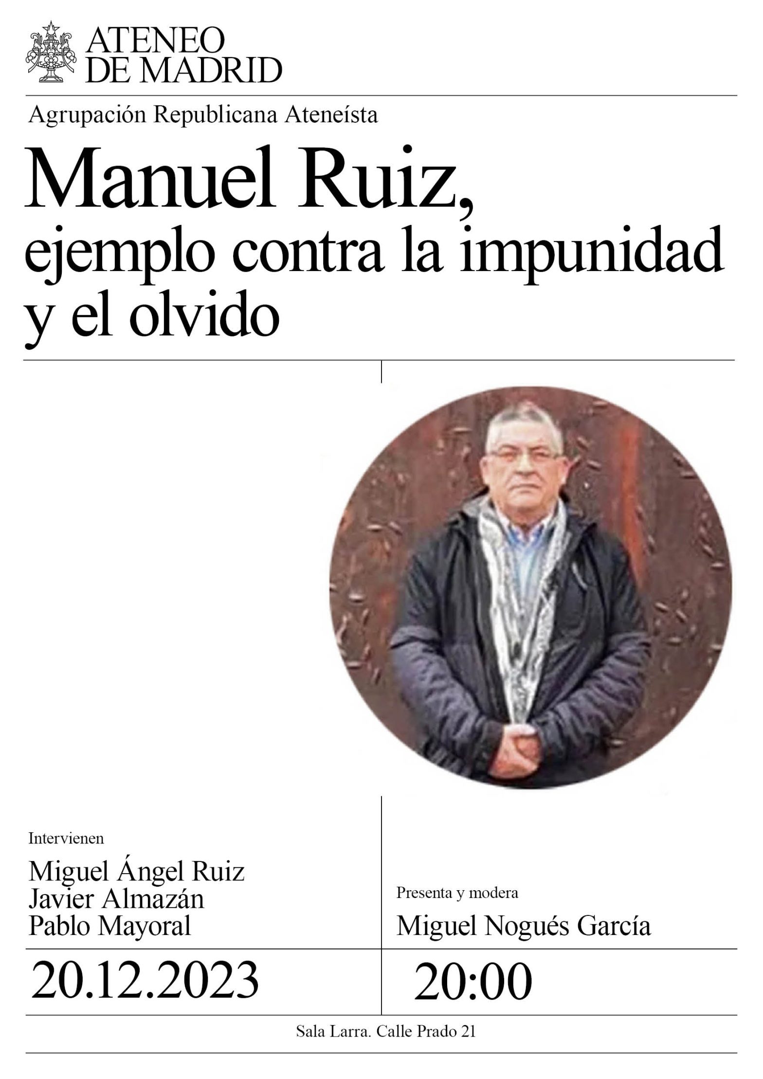 Agrupación Republicana Ateneísta. Miguel Ángel Ruiz. Javier Almazán. Pablo Mayoral. Presenta y modera. Juan Miguel Nogués García. Sala Larra. 20:00h.