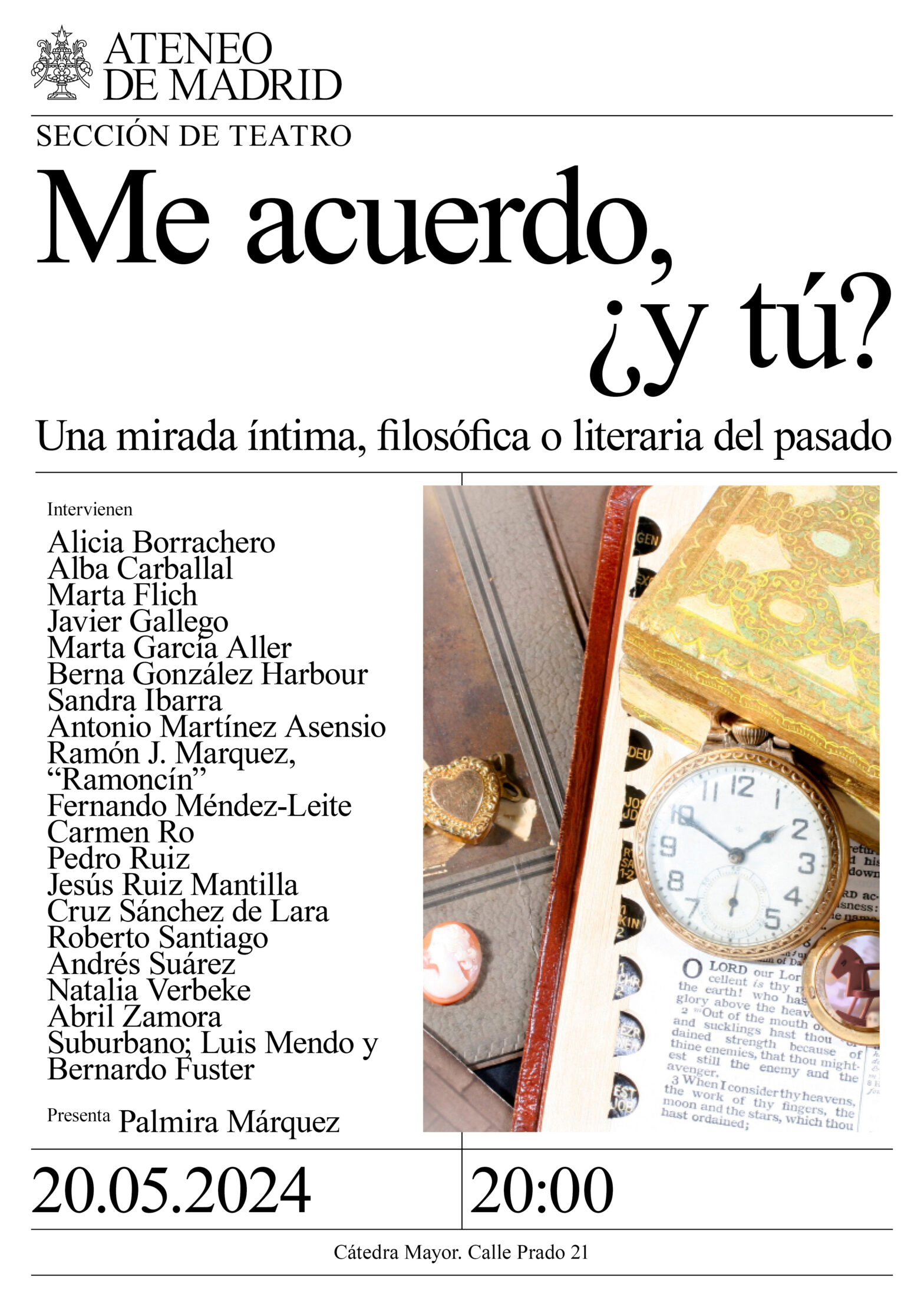 Una iniciativa organizada por la sección de Teatro del Ateneo de Madrid -presidida por Miguel Rellán-, inspirada en dos libros que recogen los Me acuerdo de sus autores, Joe Brainard (1970) y George Perec (1978).