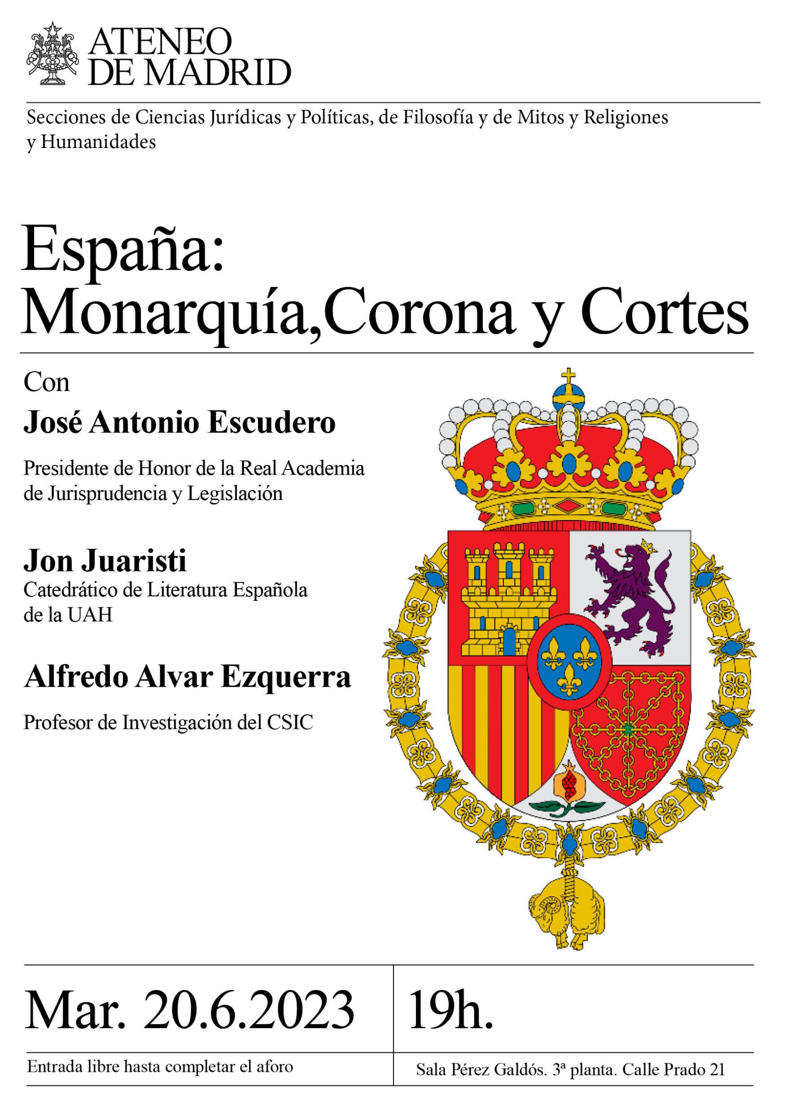 Sección de Ciencias Jurídicas y Políticas y Sección de Mitos y Religiones y Humanidades. Mesa sobre la Monarquía pasado, presente y futuro. Sala Pérez Galdós. 19h.