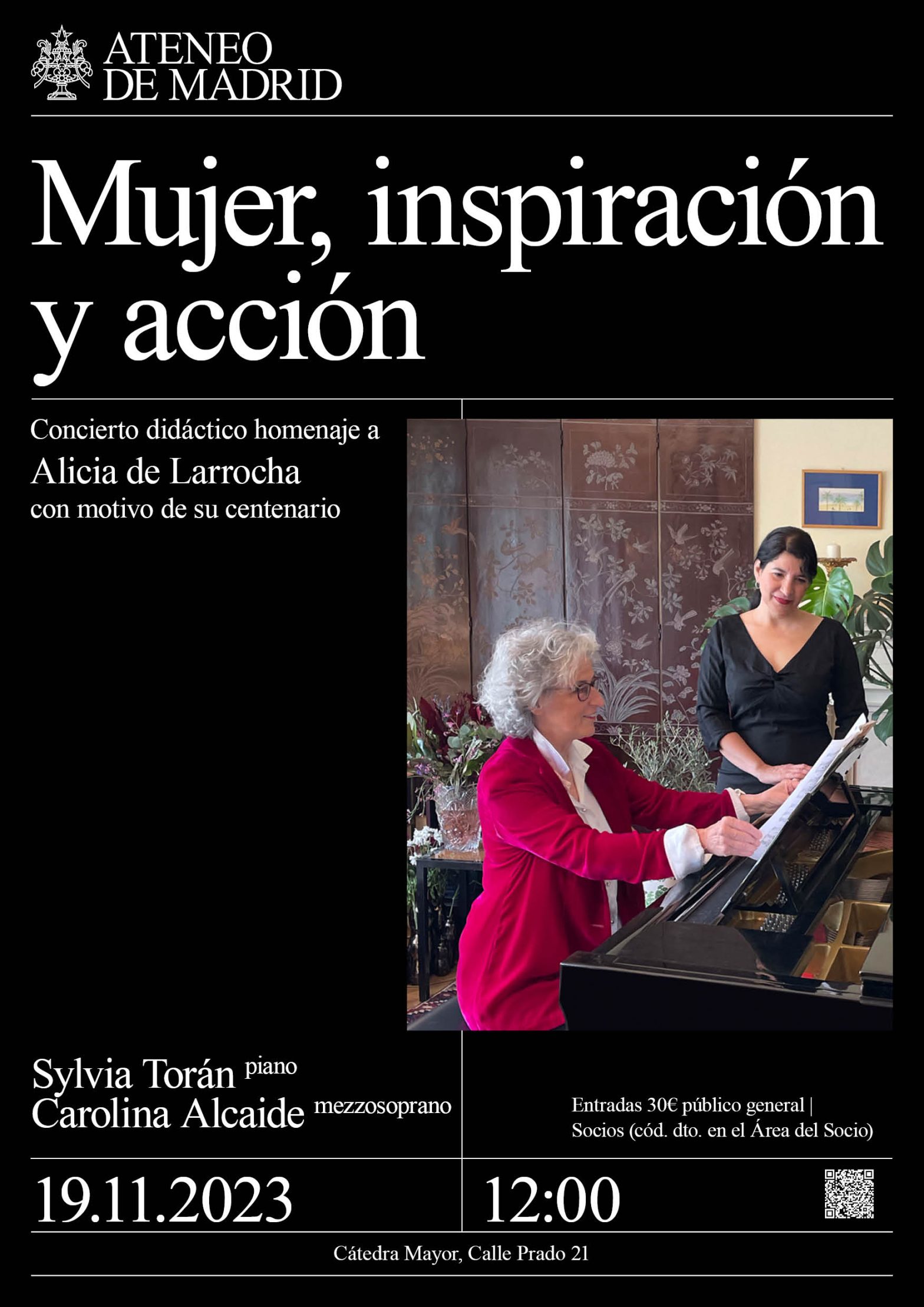Obras de Albéniz, María Rodrigo, Sylvia Torán, Chopin, Paulina García Viardot. Concierto didáctico homenaje a Alicia de Larrocha con motivo de su centenario.