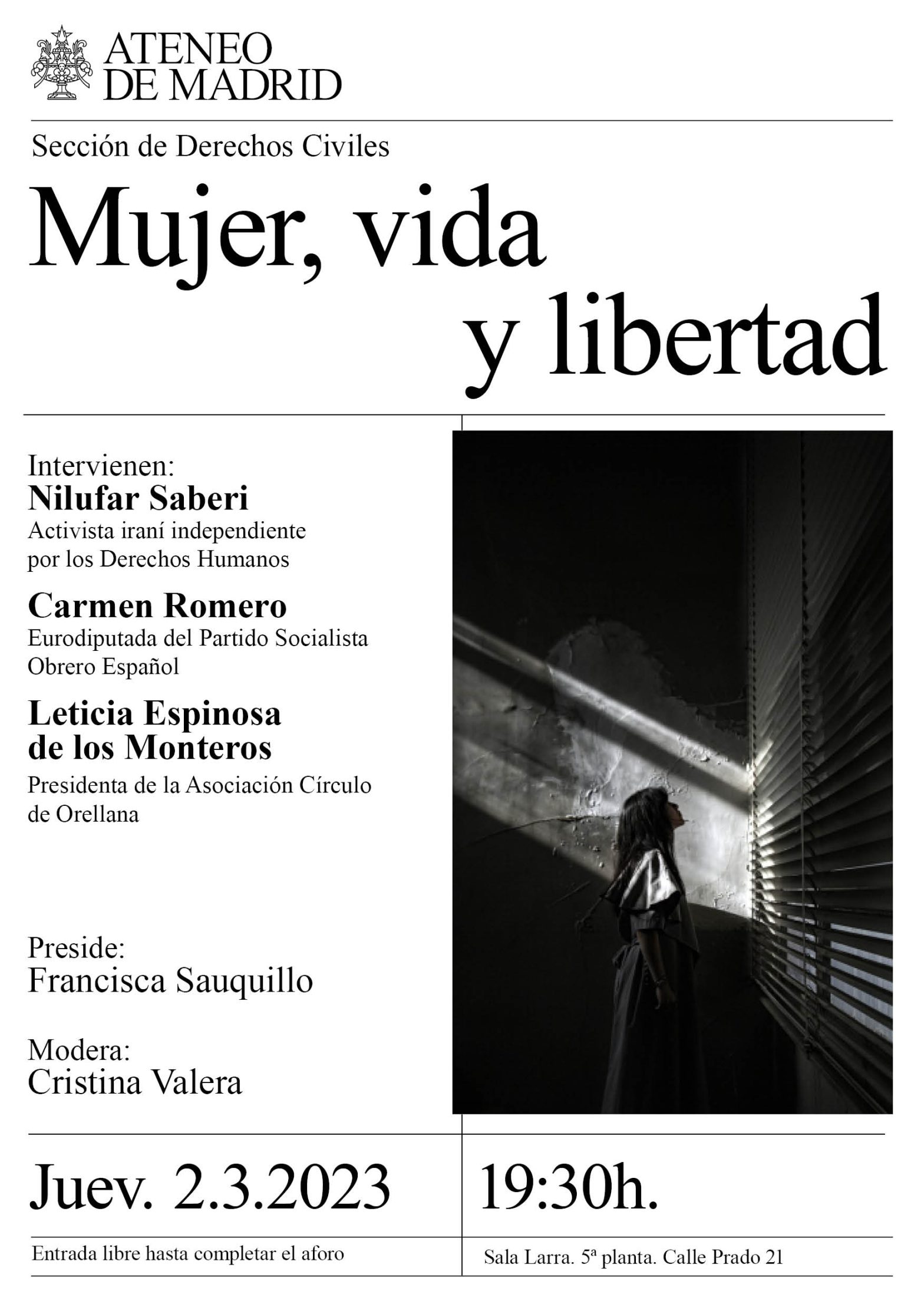 de Orellana. Preside: Francisca Sauquillo. Modera: Cristina Valera. Sala Larra. 19:30h.