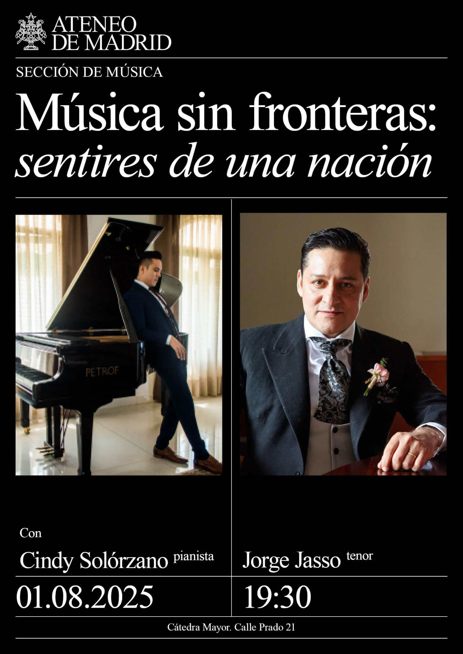 Sección de Música. Con: Cindy Solórzano, piano y Jorge Jasso, tenor. Programa. Información.