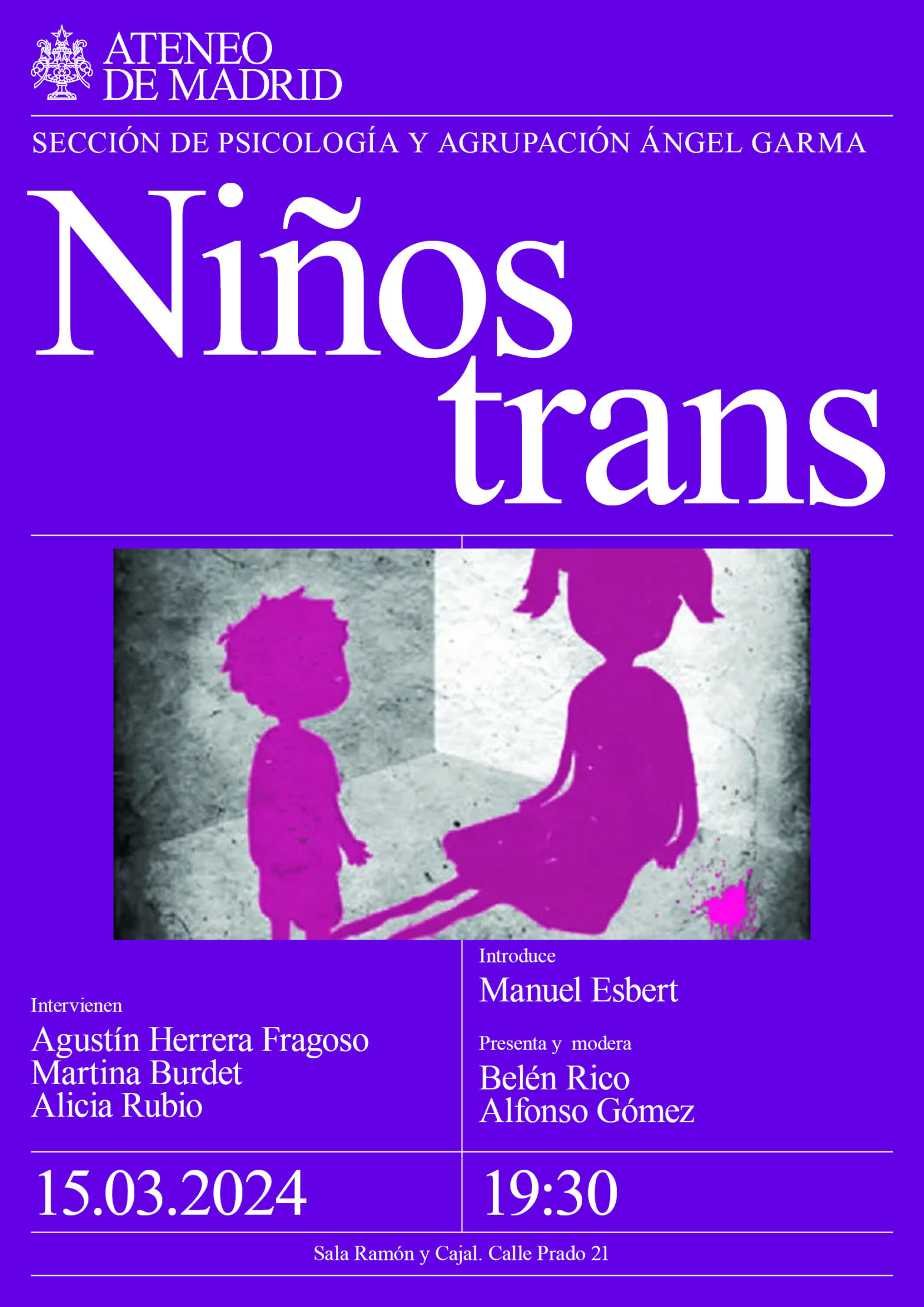 Sección de Psicología y Agrupación Ángel Garma. Intervienen: Agustín Herrera Fragoso, licenciado en Derecho y doctorado en la Cátedra de la UNESCO. Martina Burdet, psicoanalista. Alicia Rubio, profesora e investigadora. Introduce: Manuel Esbert, psicoanalista. Presenta y modera: Belén Rico y Alfonso Gómez. Sala Ramón y Cajal. 19:30h.