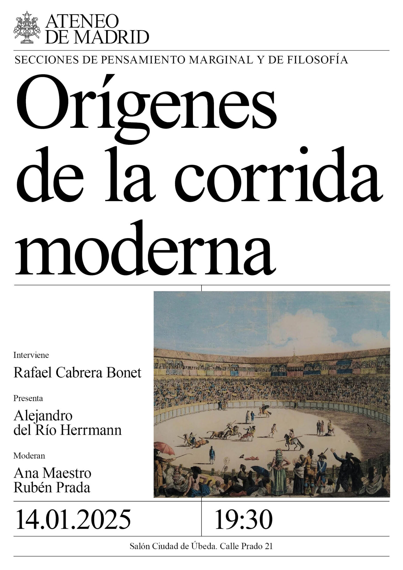 Secciones de Pensamiento Marginal y de Filosofía. Interviene: Rafael Cabrera Bonet, escritor y periodista.Presenta: Alejandro del Río Herrmann, doctor en Filosofía y editor. Moderan: Ana Maestro y Rubén Prada. Salón Ciudad de Úbeda. 19:30h.