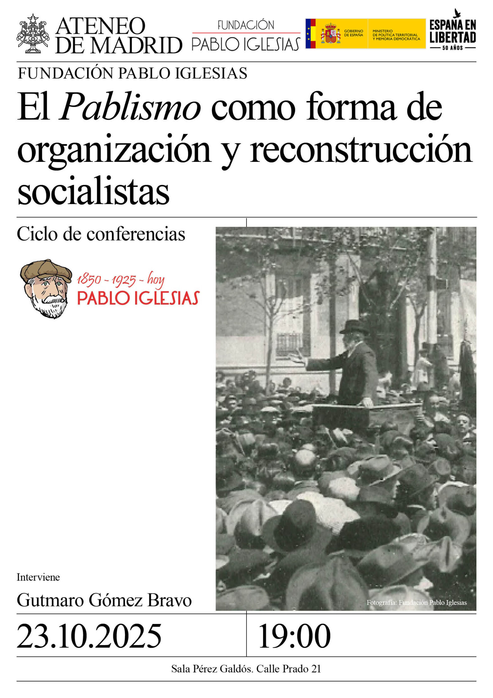 Fundación Pablo Iglesias. Interviene: Gutmaro Gómez Bravo, catedrático de Historia Contemporánea. Universidad Complutense de Madrid. Sala Pérez Galdós. 19:00h.