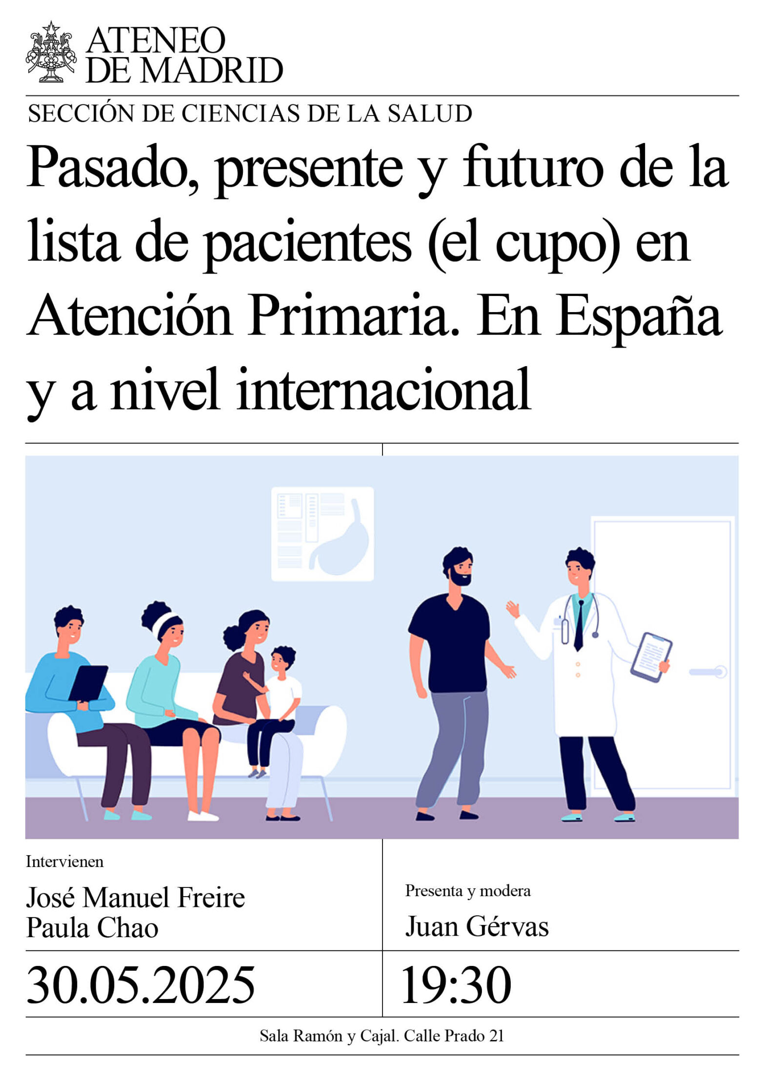 Sección de Ciencias de la Salud. Intervienen: José Manuel Freire, profesor emérito de la Escuela Nacional de Sanidad y Paula Chao, médica de Familia, vicepresidenta tercera de SEMFyC. Presenta y modera Juan Gérvas. Sala Ramón y Cajal. 19:30h.