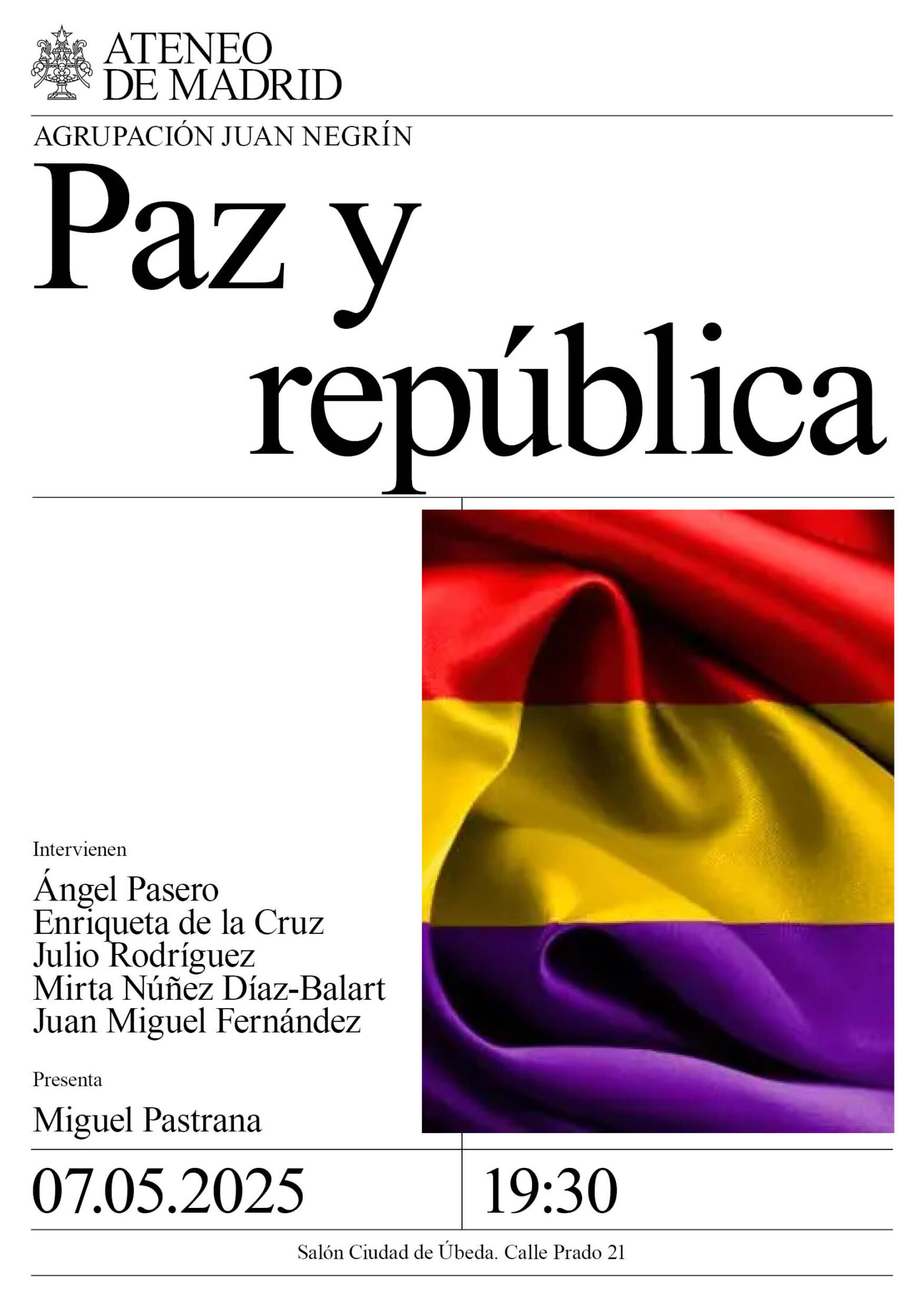 Agrupación Juan Negrín. Intervienen: Ángel Pasero, Asociación Civil Milicia y República, ACMYR; Enriqueta de la Cruz, periodista y escritora; Julio Rodríguez, general del Ejército del Aire en la Reserva; Mirta Núñez Díaz-Balart, profesora titular del Departamento de Historia de la Comunicación Social en la UCM; y Juan Miguel Fernández, asesor técnico del Tribunal de Cuentas, jubilado. Presenta Miguel Pastrana. Salón Ciudad de Úbeda. 19:30h.