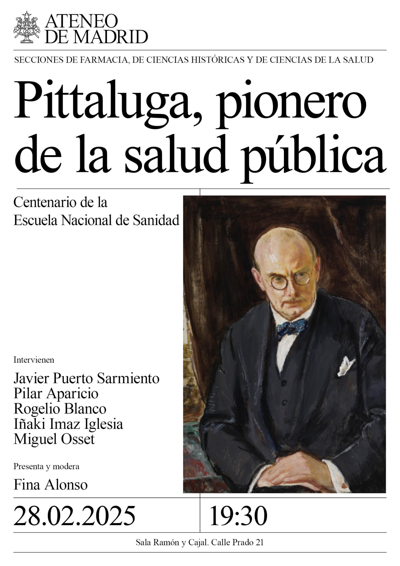 Secciones de Farmacia, de Ciencias Históricas y de Ciencias de la Salud. Intervienen: Javier Puerto Sarmiento, Pilar Aparicio, Rogelio Blanco e Iñaki Imaz Iglesia, director de la Escuela Nacional de Sanidad; y Miguel Osset, autor del libro sobre Pittaluga Diálogos. Presenta y modera: Fina Alonso. Sala Ramón y Cajal. 19:30h.