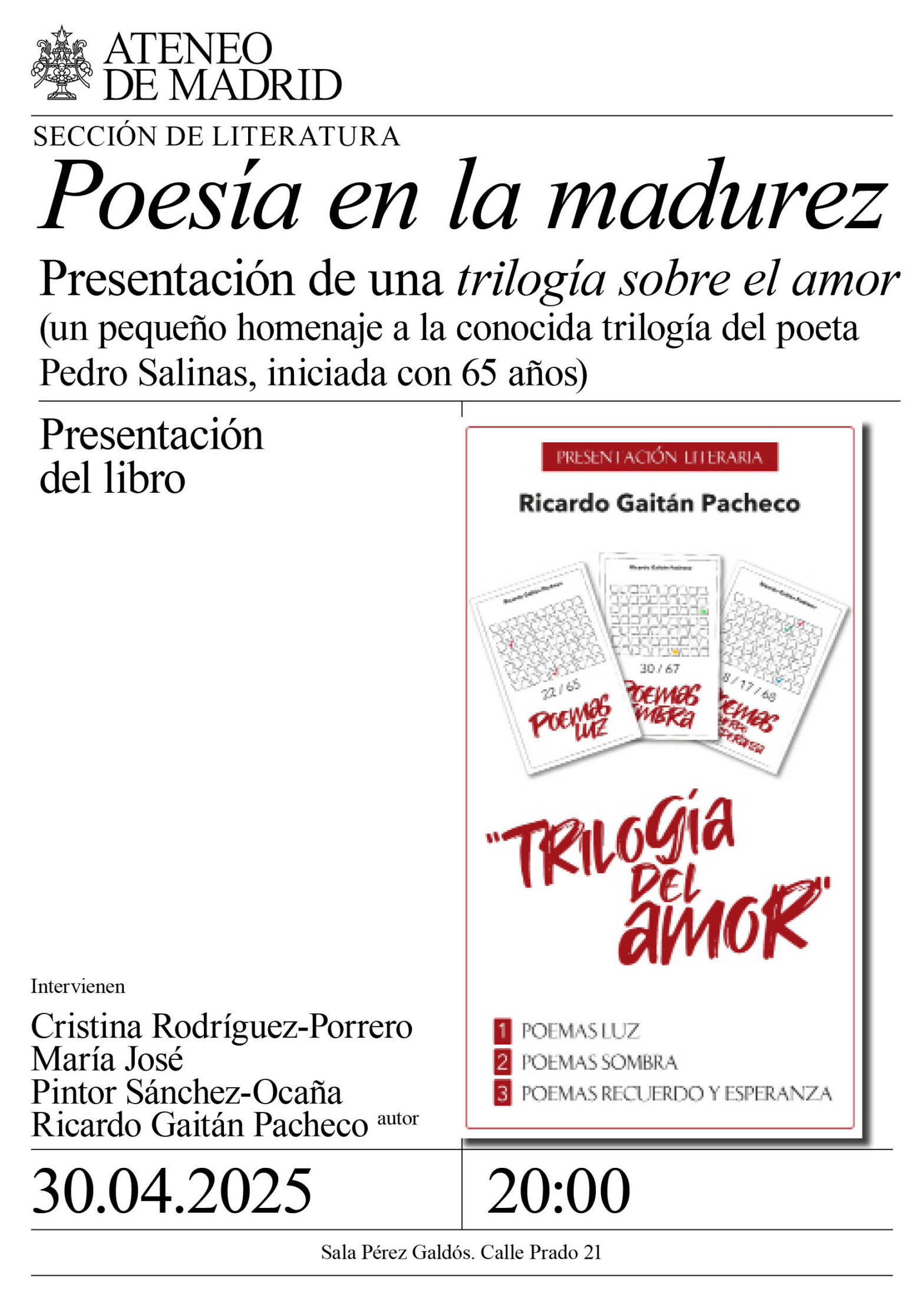 Poesía en la madurez. Presentación de una trilogía sobre el amor (un pequeño homenaje a la conocida trilogía del poeta Pedro Salinas, iniciada con 65 años)