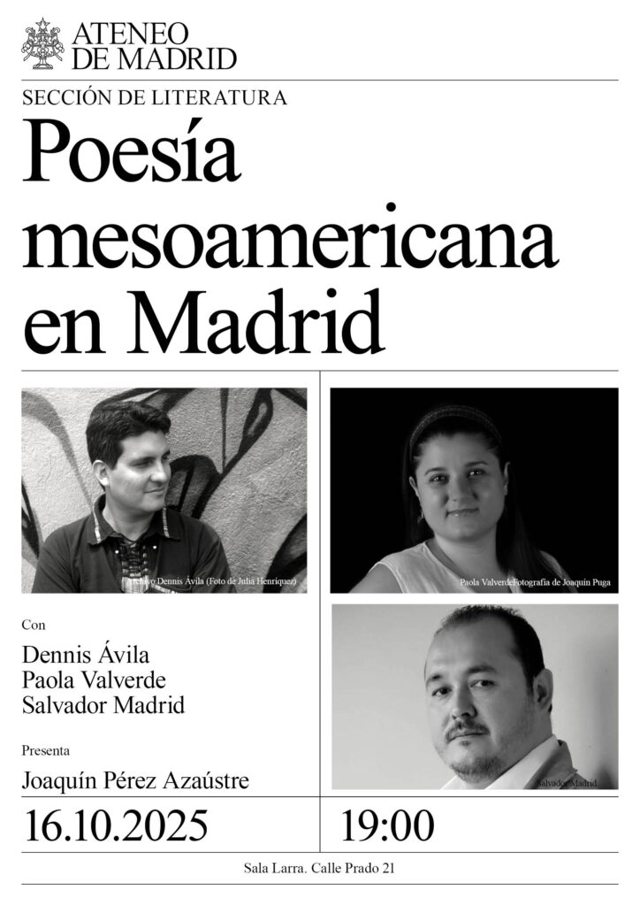 Sección de Literatura. Con: Dennis Ávila, Paola Valverde y Salvador Madrid . Presenta: Joaquín Pérez Azaústre. Sala Larra. 19:00h.