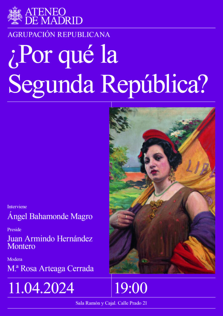 Agrupación Republicana Ateneísta. Interviene: Ángel Bahamonde Magro, catedrático emérito de Historia Contemporánea. Presenta: Juan Armindo Hernández Montero. Modera: Mª Rosa Arteaga Cerrada. Sala Ramón y Cajal. 19:00h.
