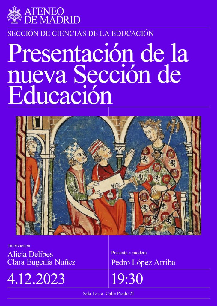 Sección de Ciencias de la Educación. Intervienen: Alicia Delibes, presidenta de la Sección y Clara Eugenia Nuñez, catedrática de Historia Económica de la UNED. Presenta y modera: Pedro López Arriba. Sala Larra. 19:30h.