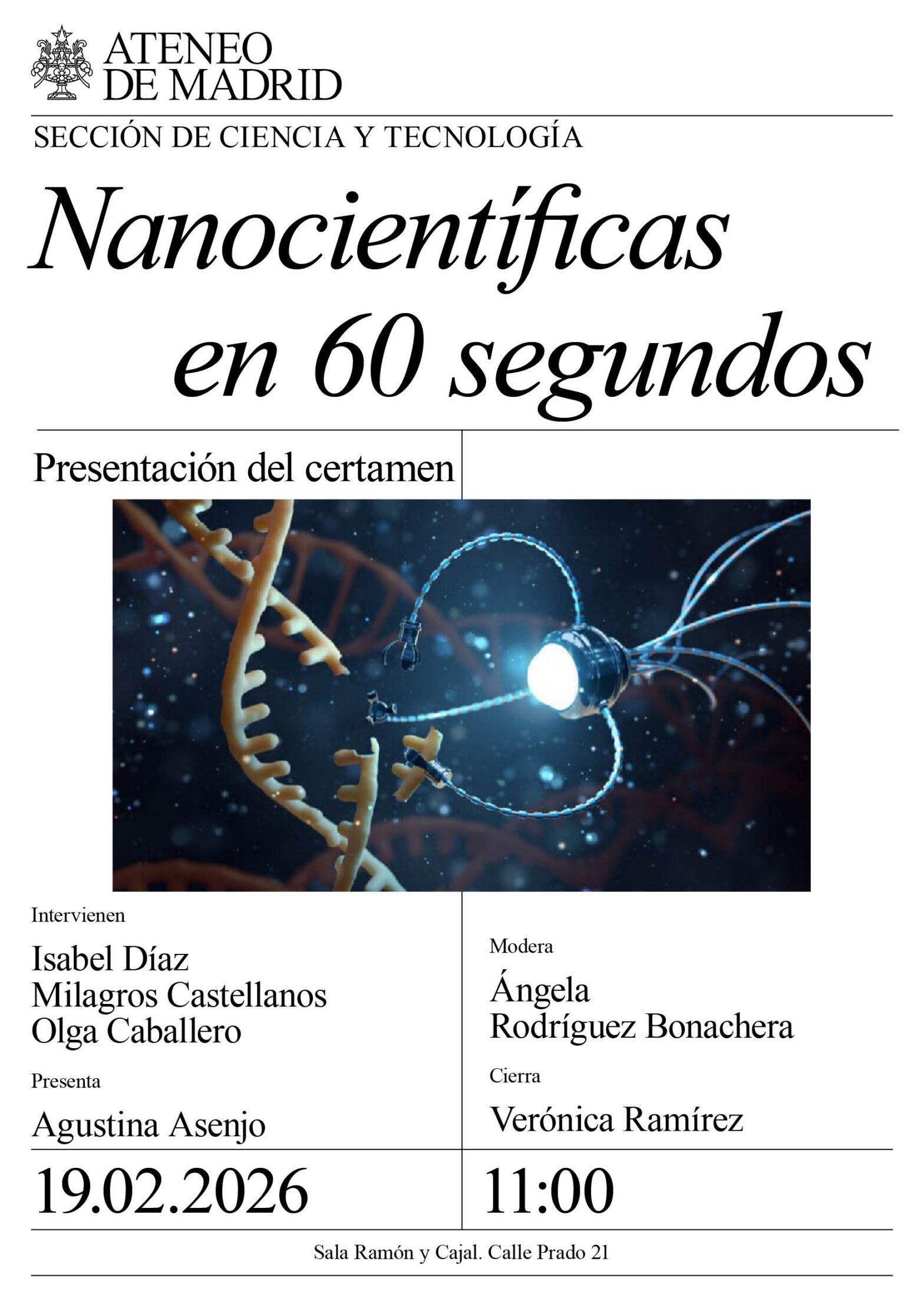 Sección de Ciencia y Tecnología. Intervienen: Isabel Díaz, Instituto de Catálisis y Petroleoquímica, ICP-CSIC, y Vicepresidenta de Relaciones Internacionales del CSIC; Milagros Castellanos, IMDEA Nanociencia; Olga Caballero, Instituto de Micro y Nanotecnología, IMN-CNM,CSIC; y Sol Carretero, Instituto de Ciencia de Materiales de Madrid, ICMM-CSIC. Presenta: Agustina Asenjo, Instituto de Ciencia de Materiales de Madrid, ICMM-CSIC. Modera: Ángela Rodríguez Bonachera, Instituto de Ciencia de Materiales de Madrid, ICMM-CSIC. Cierra: Verónica Ramírez, Instituto de Ciencia de Materiales de Madrid, ICMM-CSIC. Sala Ramón y Cajal. 11:00h.