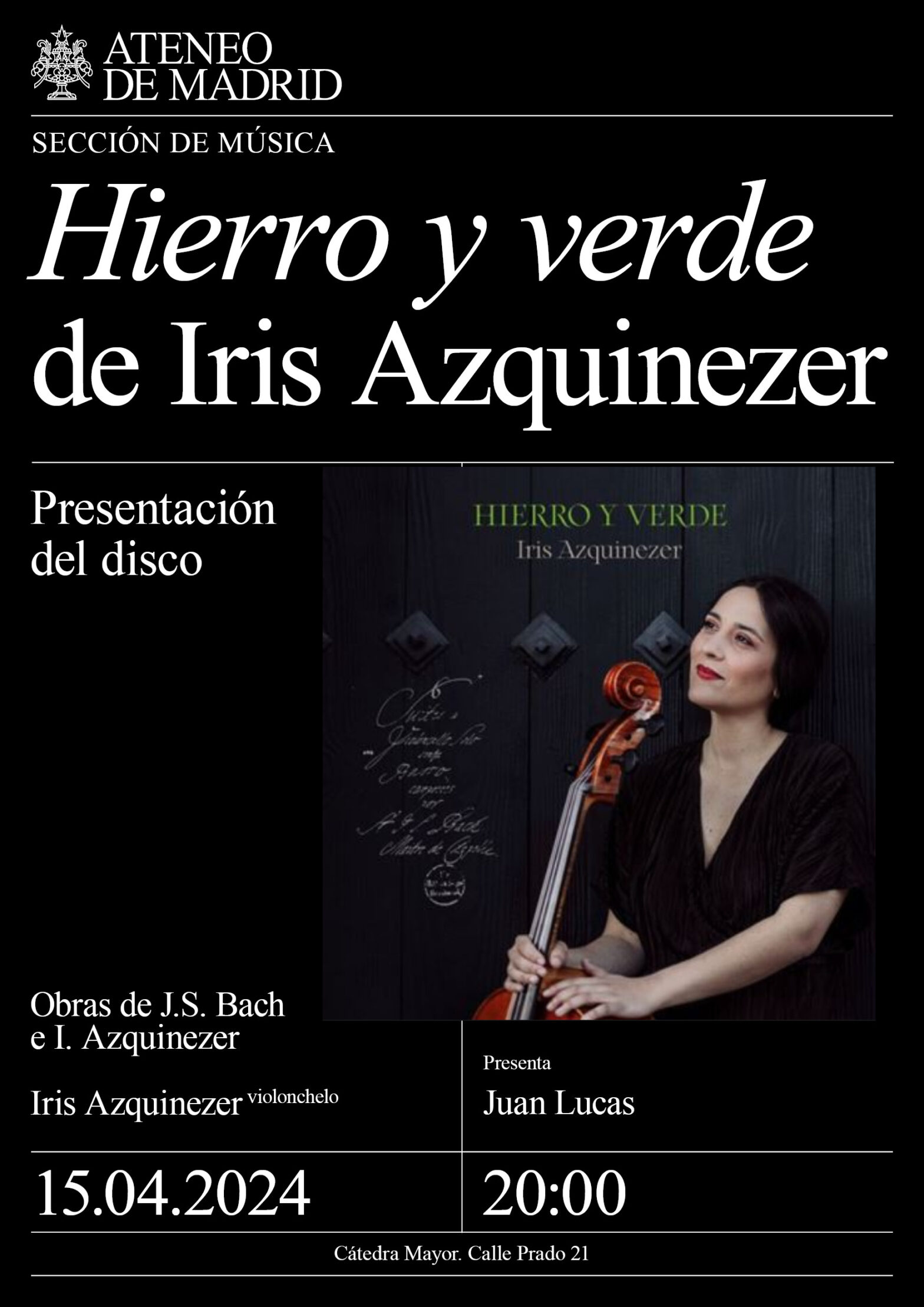 Sección de Música. Presenta: Juan Lucas. Iris Azquinezer, violonchelo. Obras de J.S. Bach e I. Azquinezer. Cátedra Mayor. 20:00h. Dosier.