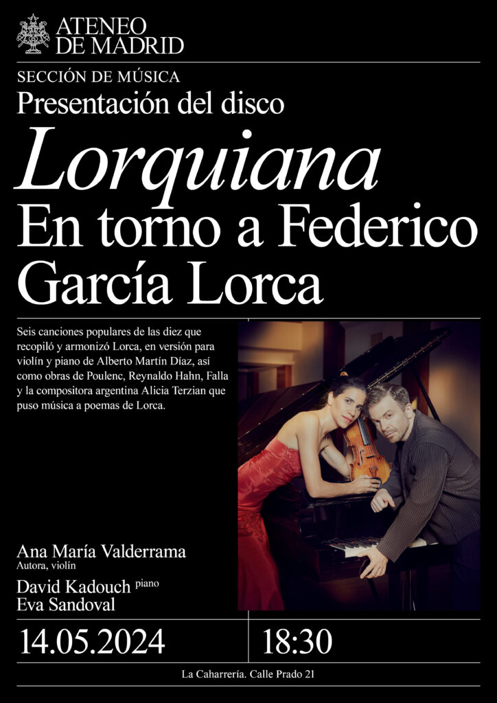 Sección de Música. Intervienen: Ana María Valderrama, autora del disco, violinista; David Kadouch, pianista; y Eva Sandoval. La Cacharrería. 18:30h.