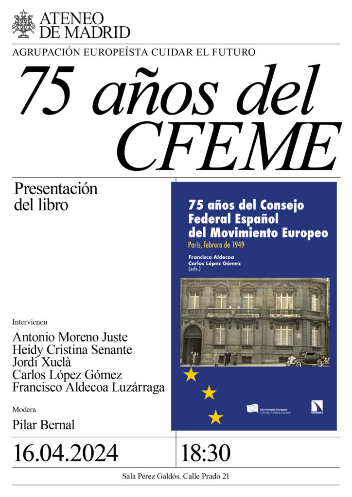 Agrupación Europeísta Cuidar el Futuro. Intervienen: Antonio Moreno Juste, Heidy Cristina Senante, Jordi Xuclà, Carlos López Gómez y Francisco Aldecoa Luzárraga. Modera: Pilar Bernal. Sala Pérez Galdós. 18:30h.