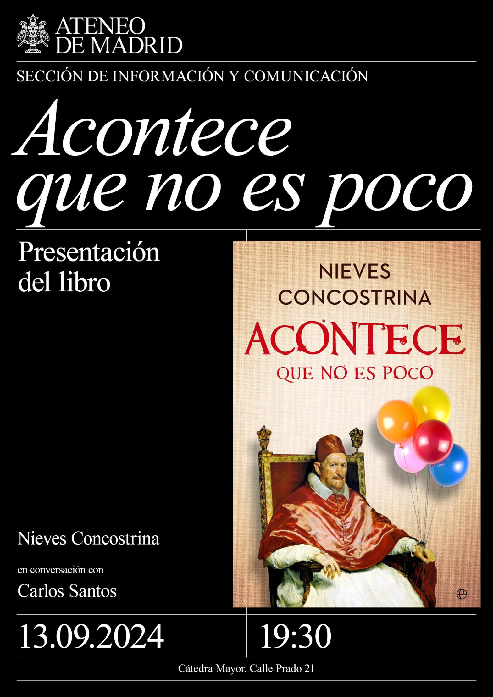 Sección de Información y Comunicación. Nieves Concostrina en conversación con Carlos Santos. Cátedra Mayor. 19:30h.
