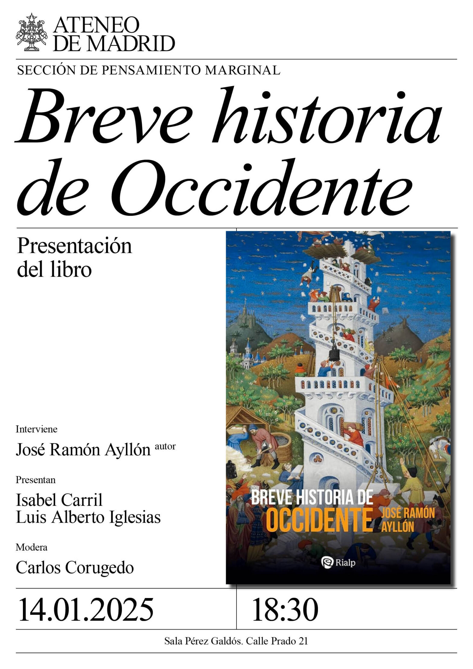 Sección de Pensamiento Marginal. Interviene: José Ramón Ayllón, autor. Presentan: Isabel Carril y Luis Alberto Iglesias. Modera: Carlos Corugedo. Sala Pérez Galdós. 18:30h.