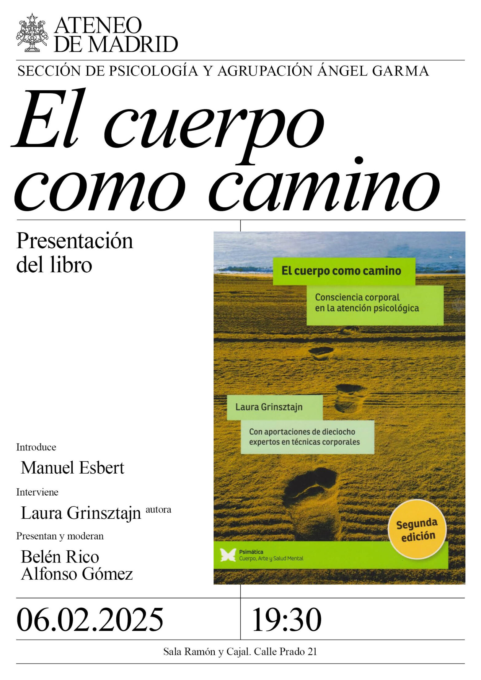 Sección de Psicología y Agrupación Ángel Garma. Introduce: Manuel Esbert. Intervienen: Laura Grinsztajn, autora. Presenta y modera: Belén Rico y Alfonso Gómez. Sala Ramón y Cajal. 19:30h.