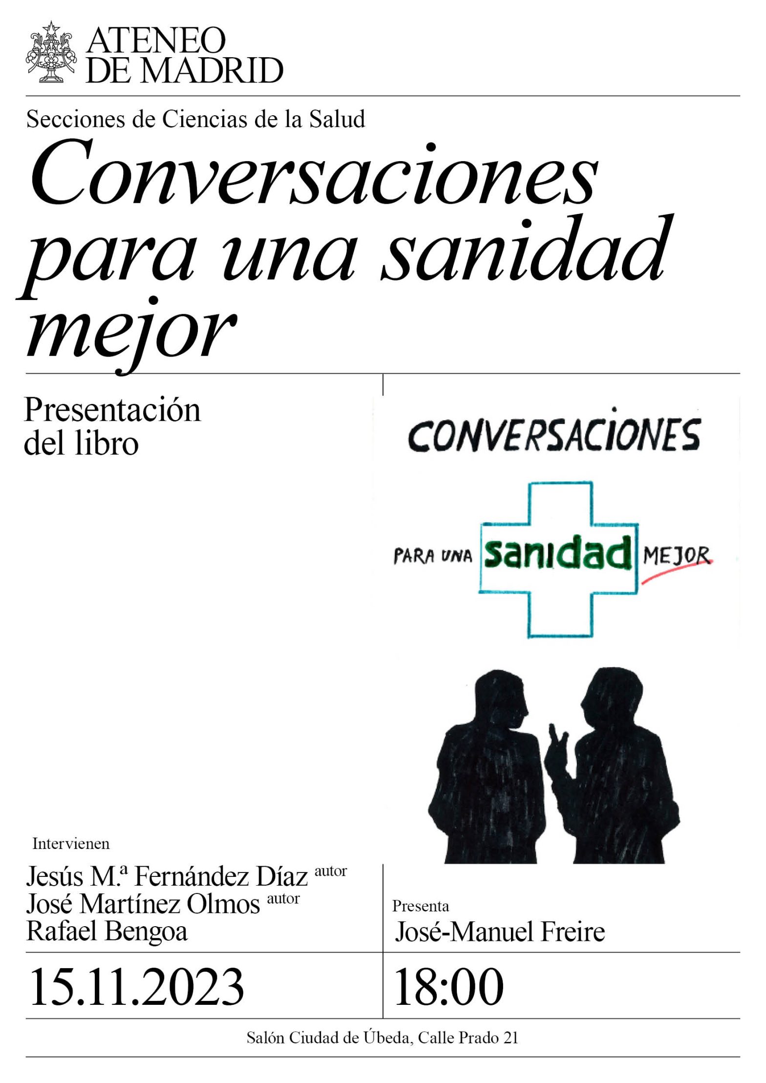 Sección de Ciencias de la Salud. Intervienen: Jesús M.ª Fernández Díaz, médico y autor. José Martínez Olmos, médico y autor. Rafael Bengoa, exconsejero de Sanidad del Gobierno Vasco. Presenta: José-Manuel Freire. Salón Ciudad de Úbeda. 18h.