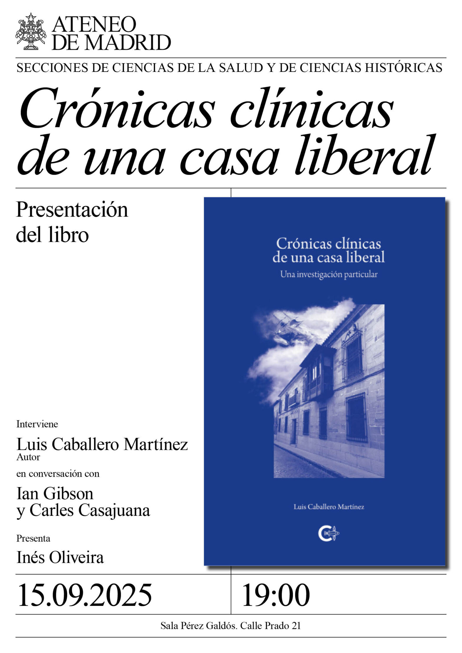 Secciones de Ciencias de la Salud y de Ciencias Históricas. Interviene: Luis Caballero Martínez, autor en conversación con Ian Gibson y Carles Casajuana. Presenta: Inés Oliveira. Sala Pérez Galdós. 19:00h.