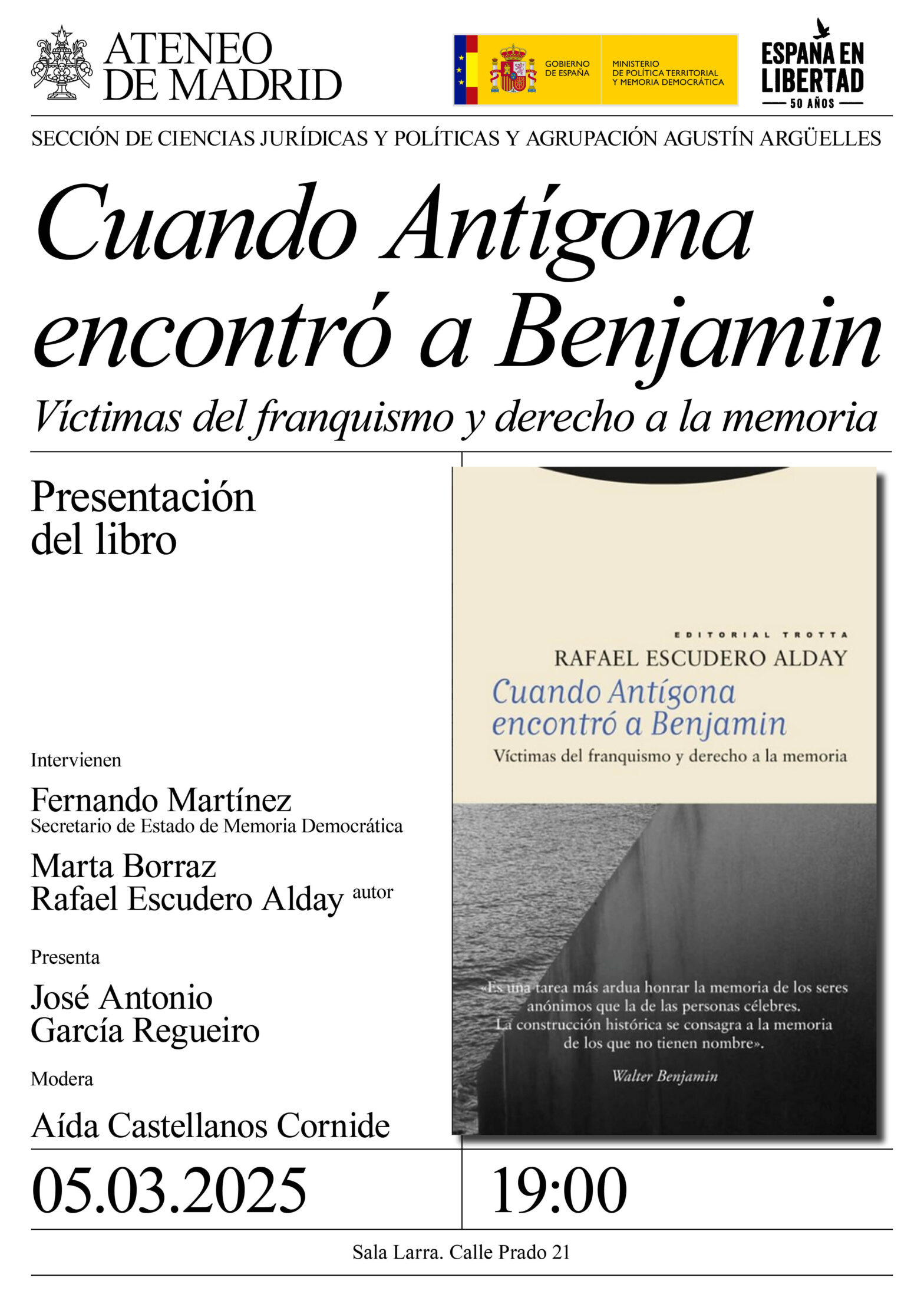Presentación del libro «Cuando Antígona encontró a Benjamin» «Víctimas del franquismo y derecho a la memoria»