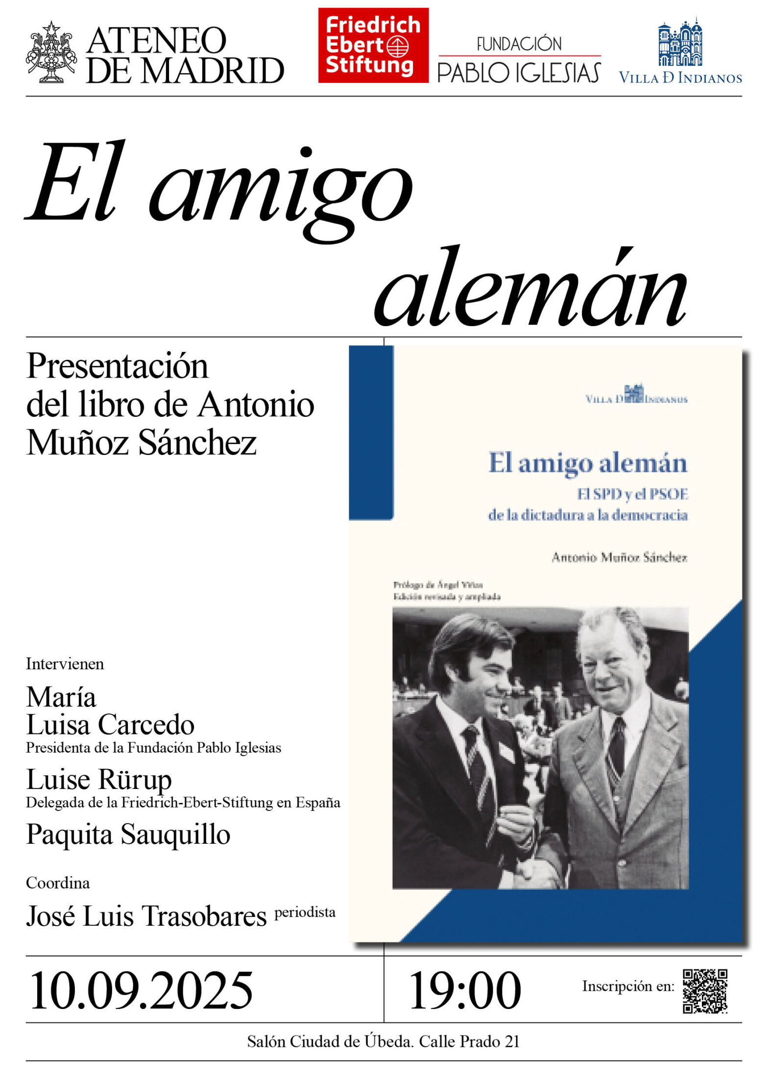 Intervienen: María Luisa Carcedo, presidenta de la Fundación Pablo Iglesias, Luise Rürup, delegada de la Friedrich-Ebert-Stiftung en España; y Paquita Sauquillo. Coordina: José Luis Trasobares, periodista. Salón Ciudad de Úbeda. 19:00h.