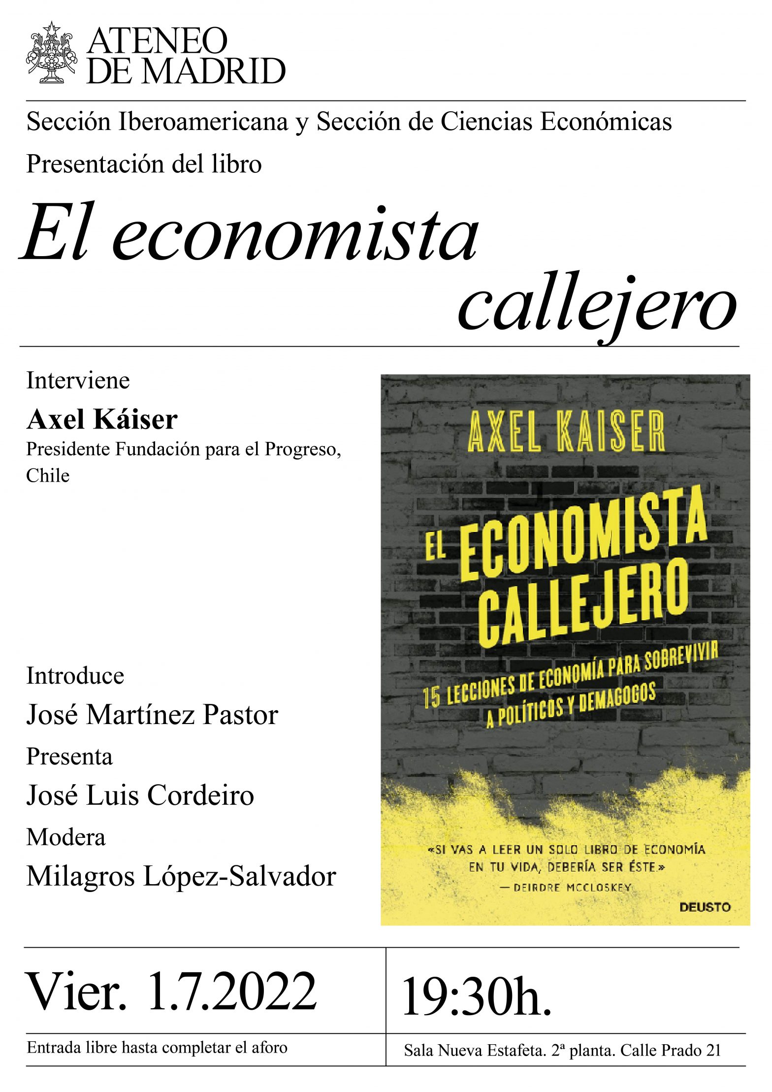 Sección Iberoamericana y Ciencias Económicas. Interviene: Axel Káiser, presidente Fundación para el Progreso, Chile . Introduce José Martínez Pastor. Presenta José Luis Cordeiro. Modera Milagros López-Salvador. Sala Nueva Estafeta. 19 h.