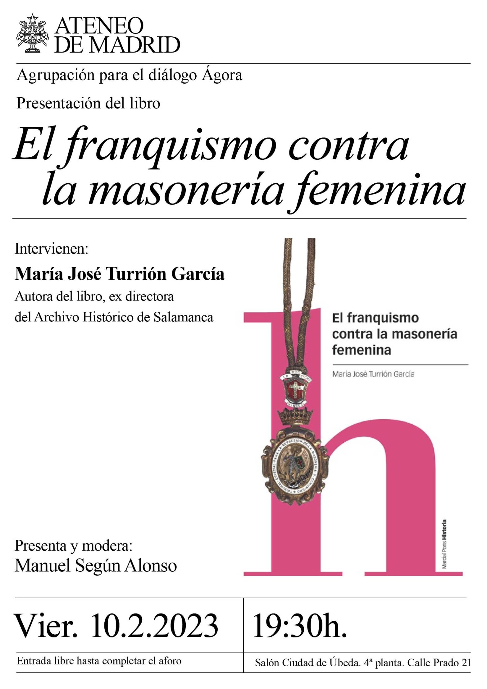 Agrupación Ágora para el diálogo. Intervienen: María José Turrión García, autora del libro, ex-directora del Archivo Histórico de Salamanca. Presenta y modera: Manuel Según Alonso. Salón Ciudad de Úbeda. 19:30h.
