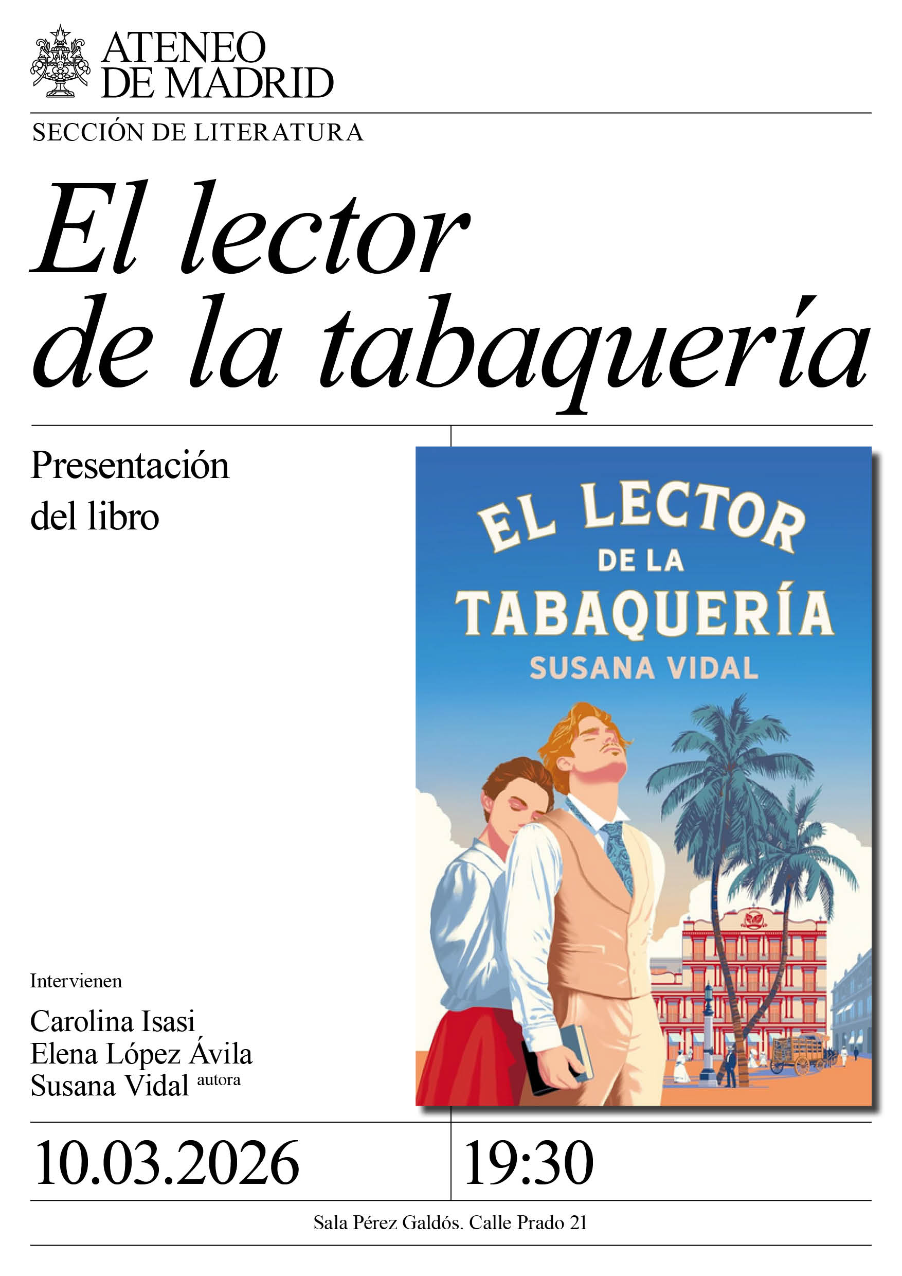 Sección de Literatura. Intervienen: Carolina Isasi, periodista cultural; Elena López Ávila, periodista especializada en moda, belleza y estilo de vida; y Susana Vidal, autora y licenciada en Ciencias Económicas y Empresariales. Sala Pérez Galdós. 19:30h.