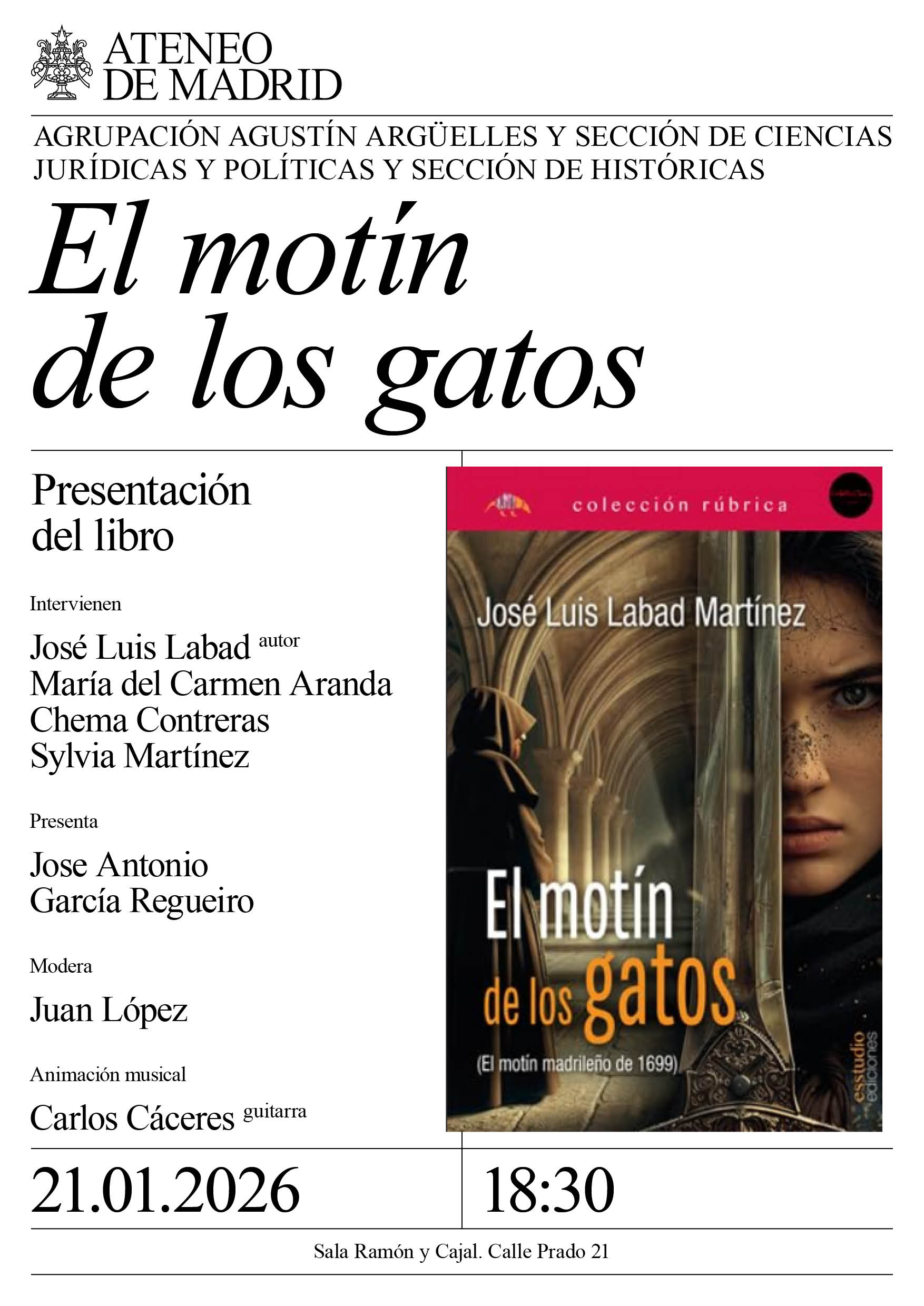 Agrupación Agustín Argüelles y Sección de Ciencias Jurídicas y Políticas y Sección de Históricas. Intervienen: José Luis Labad, autor, académico y director en España de la Academia Norteamericana de Literatura Moderna Internacional en New Jersey (EEUU; María del Carmen Aranda, escritora y poeta; Chema Contreras, locutor, escritor y actor; y Sylvia Martínez, periodista. Presenta: Jose Antonio García Regueiro, Presidente de la Agrupación “Agustín Argüelles”. Modera: Juan López. Animación musical: Carlos Cáceres, especialista en música de Cámara. Guitarrista del quinteto “Camerata Musiké”. Sala Ramón y Cajal. 18:30h.