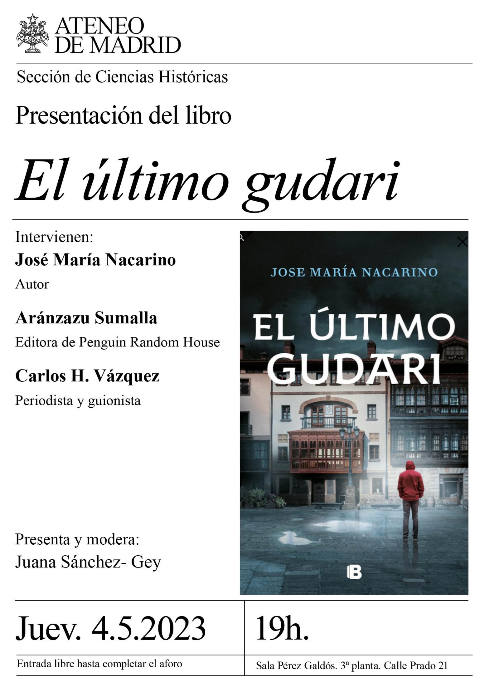 Sección de Ciencias Históricas. Intervienen: José María Nacarino, autor; Aránzazu Sumalla, editora de Penguin Random House; Carlos H. Vázquez, periodista y guionista. Presenta y modera: Juana Sánchez- Gey. Sala Pérez Galdós. 19h.