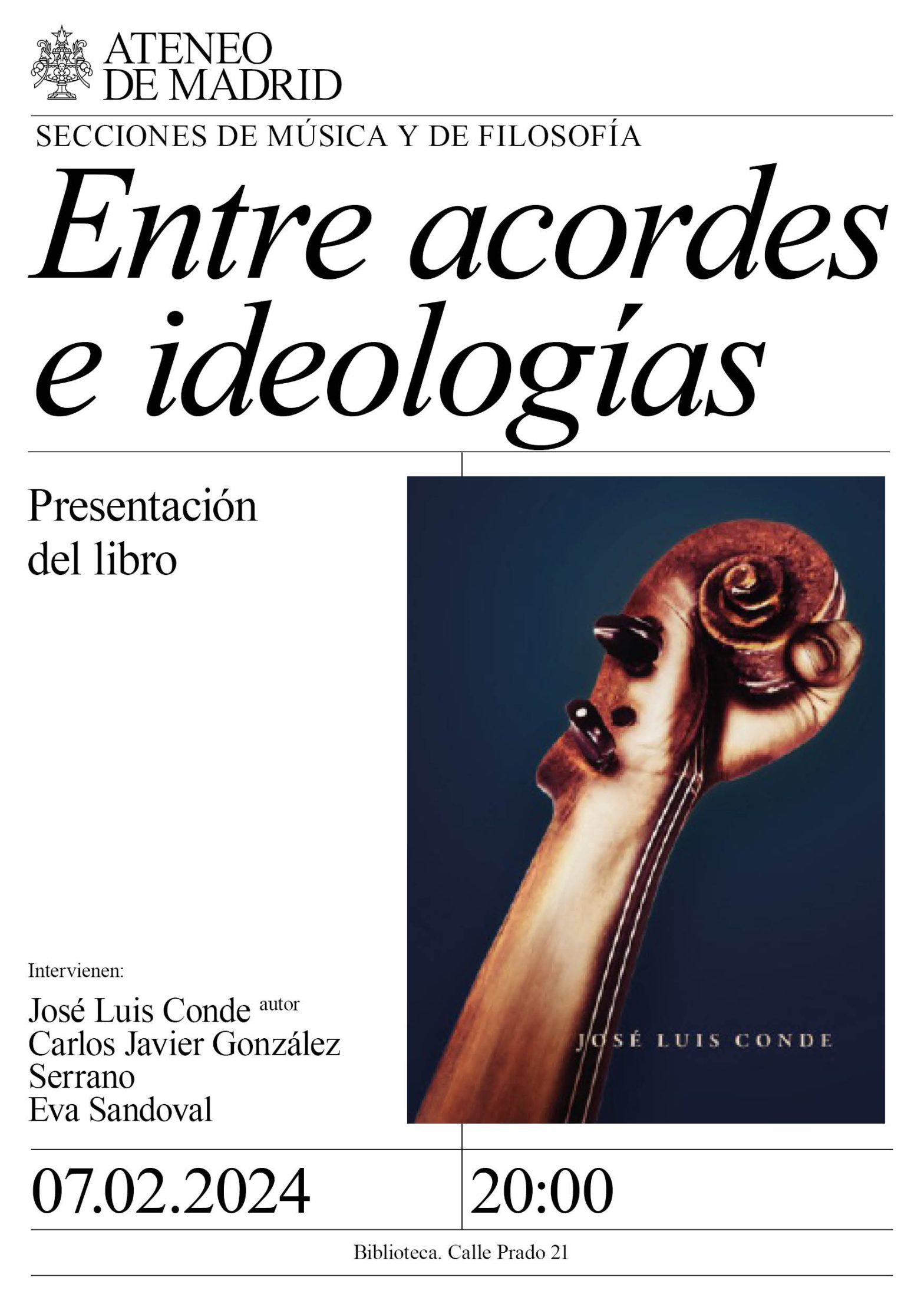 Secciones de Música y de Filosofía. Intervienen: José Luis Conde, autor y musicólogo; Carlos Javier González Serrano, profesor de filosofía y psicología; y Eva Sandoval, musicóloga y periodista musical. Biblioteca. 20:00h.