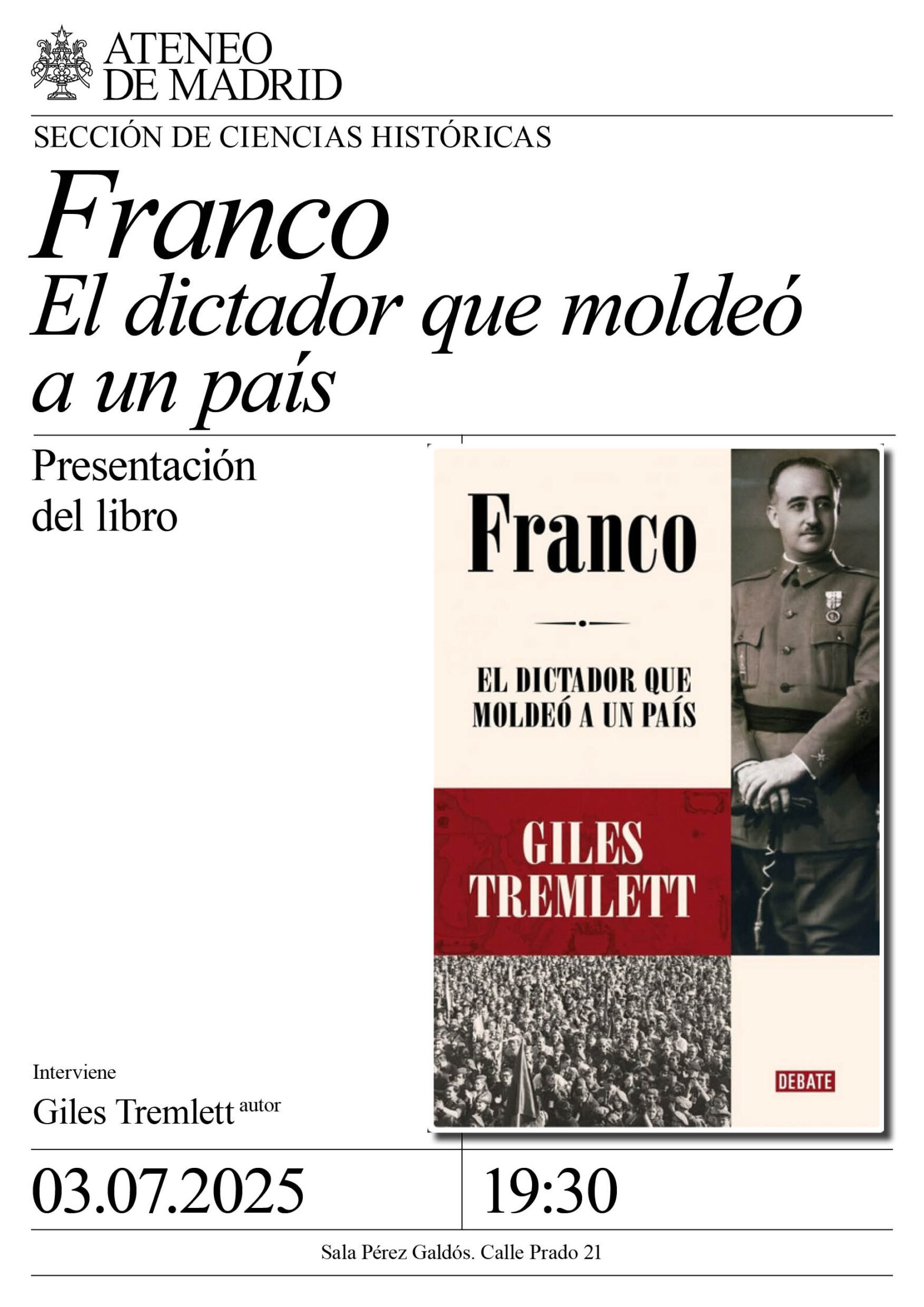 Sección de Ciencias Históricas. Interviene Giles Tremlett, autor. Sala Pérez Galdós. 19:30h.