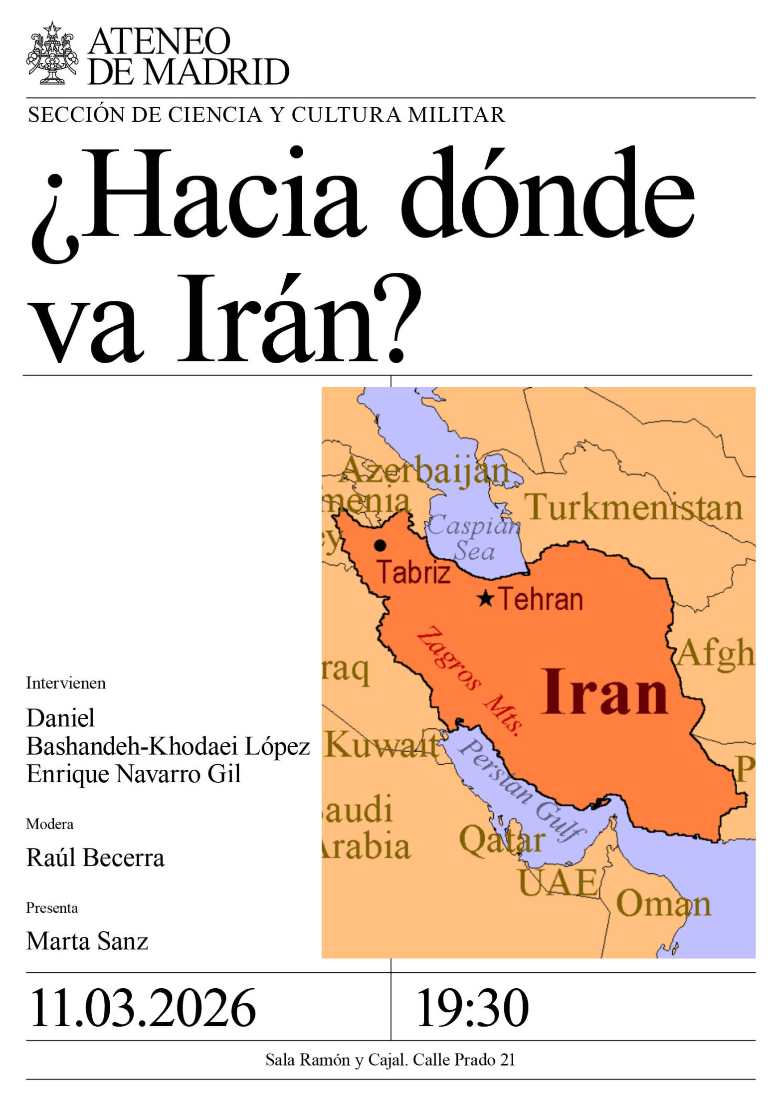 Sección de Ciencia y Cultura Militar. Intervienen: Daniel Bashandeh-Khodaei López y Enrique Navarro Gil. Modera: Raúl Becerra. Presenta: Marta Sanz. Sala Ramón y Cajal. 19:30h.