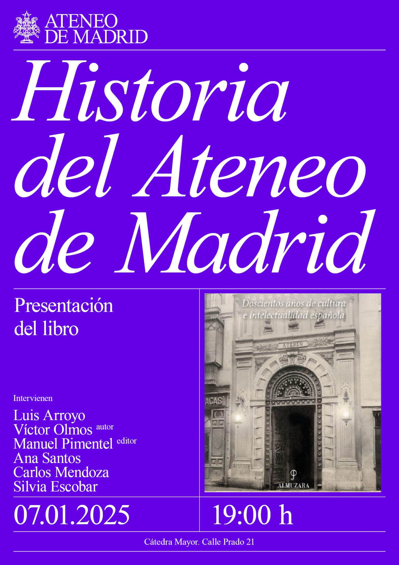 Intervienen: Luis Arroyo, Manuel Pimentel, editor; Víctor Olmos, autor; Ana Santos, Carlos Mendoza y Silvia Escobar. Cátedra Mayor. 19:00h.