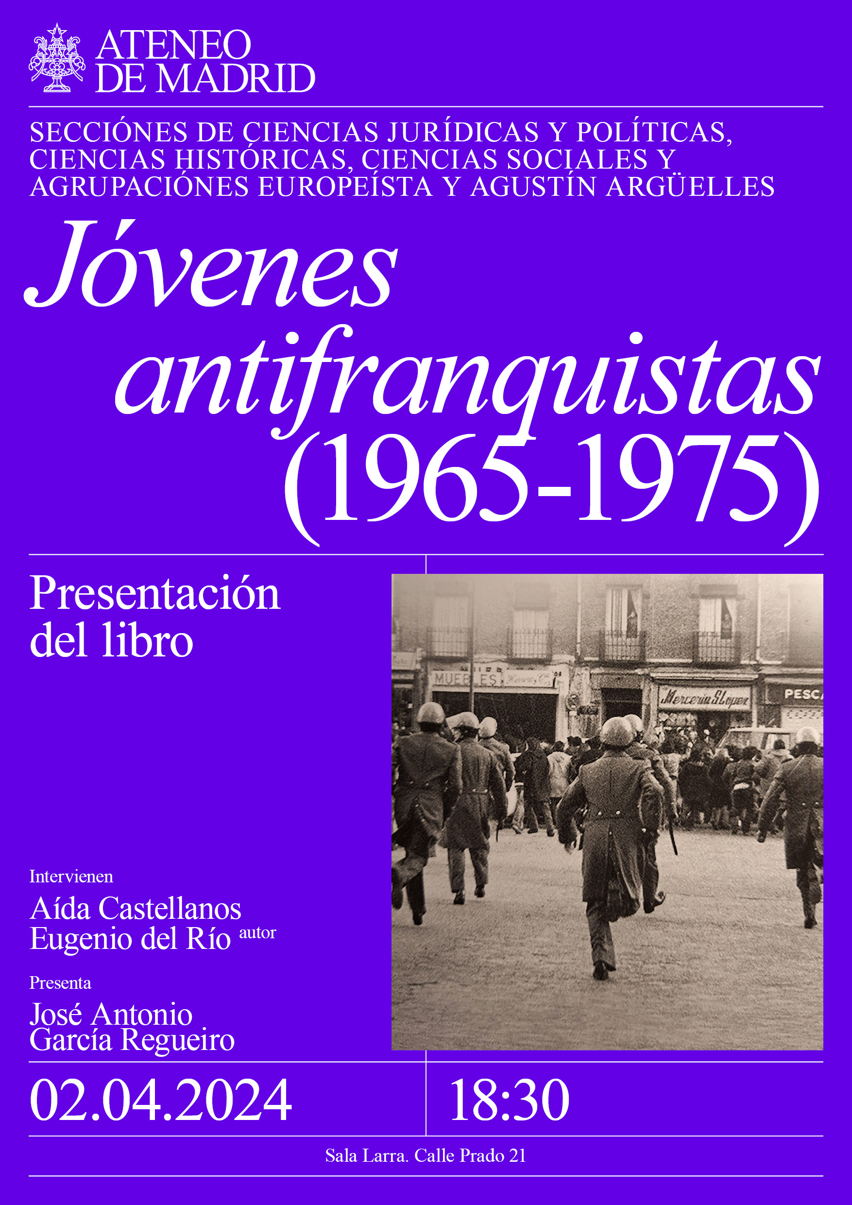 Secciones de Ciencias Jurídicas y Políticas, de Ciencias Históricas, de Ciencias Sociales y las Agrupaciones Europeísta y Agustín Argüelles. Intervienen: Aída Castellanos, licenciada en Ciencias Políticas y Eugenio del Río, autor. Presenta: José Antonio García Regueiro. Sala Larra. 18:30h.