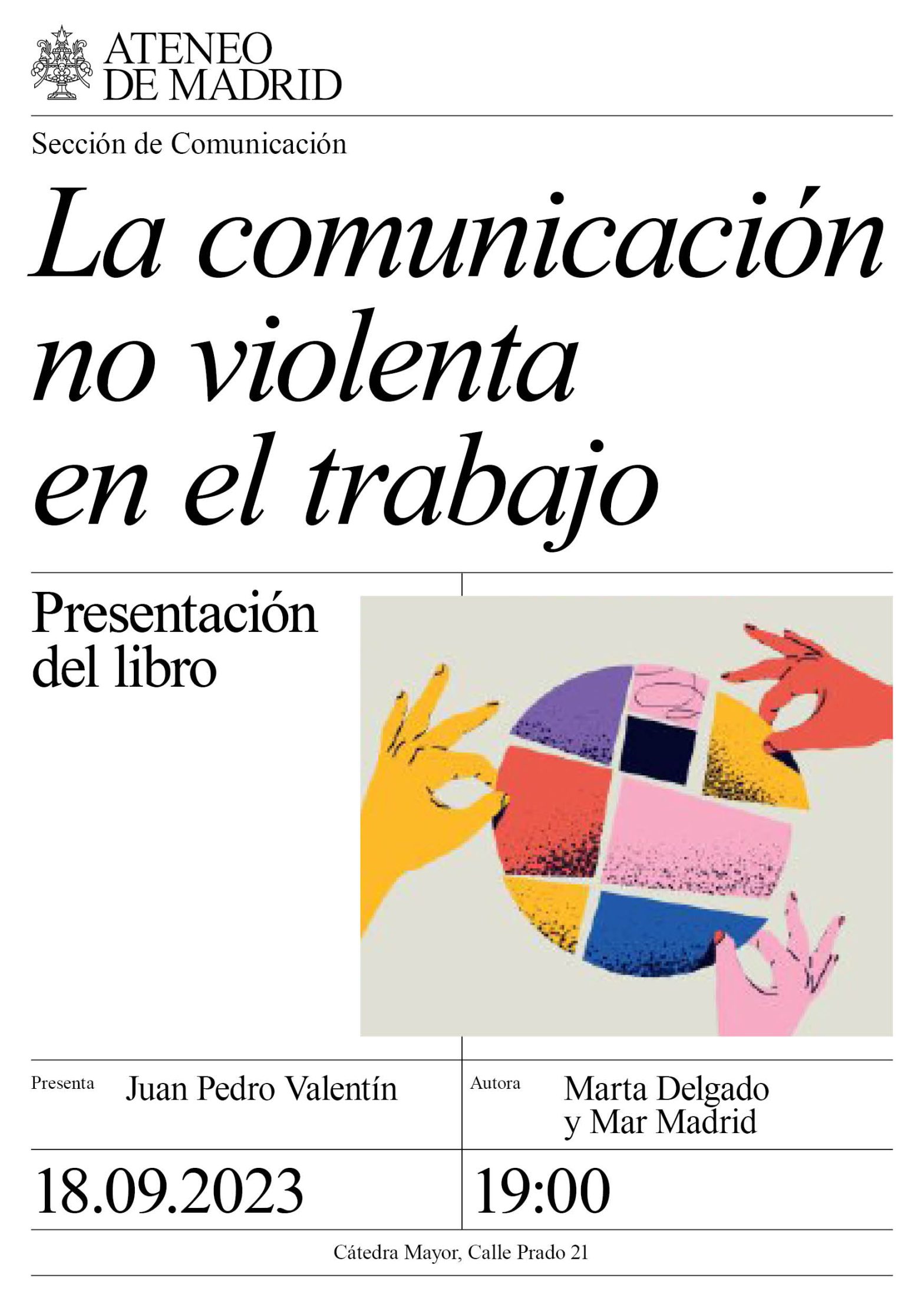 Sección de Comunicación. Un enfoque colaborativo para empresas, escuelas, instituciones y grupos. Editorial Acanto, escrito por las autoras Marta Delgado Urdanibia y Mar Madrid Caballero. Presenta Juan Pedro Valentín. Cátedra Mayor. 19:00h. Bios