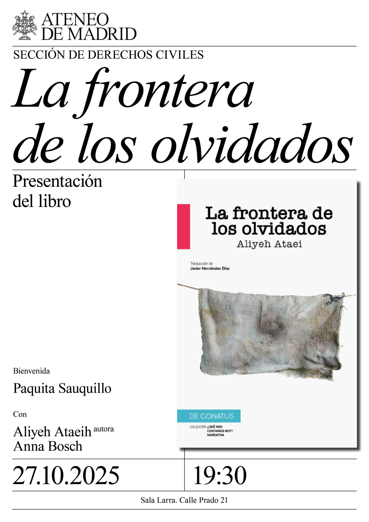Sección de Derechos Civiles. Bienvenida Paquita Sauquillo. Con: Aliyeh Ataeih, autora y Anna Bosch, corresponsal de RTVE. Sala Larra. 19:30h.